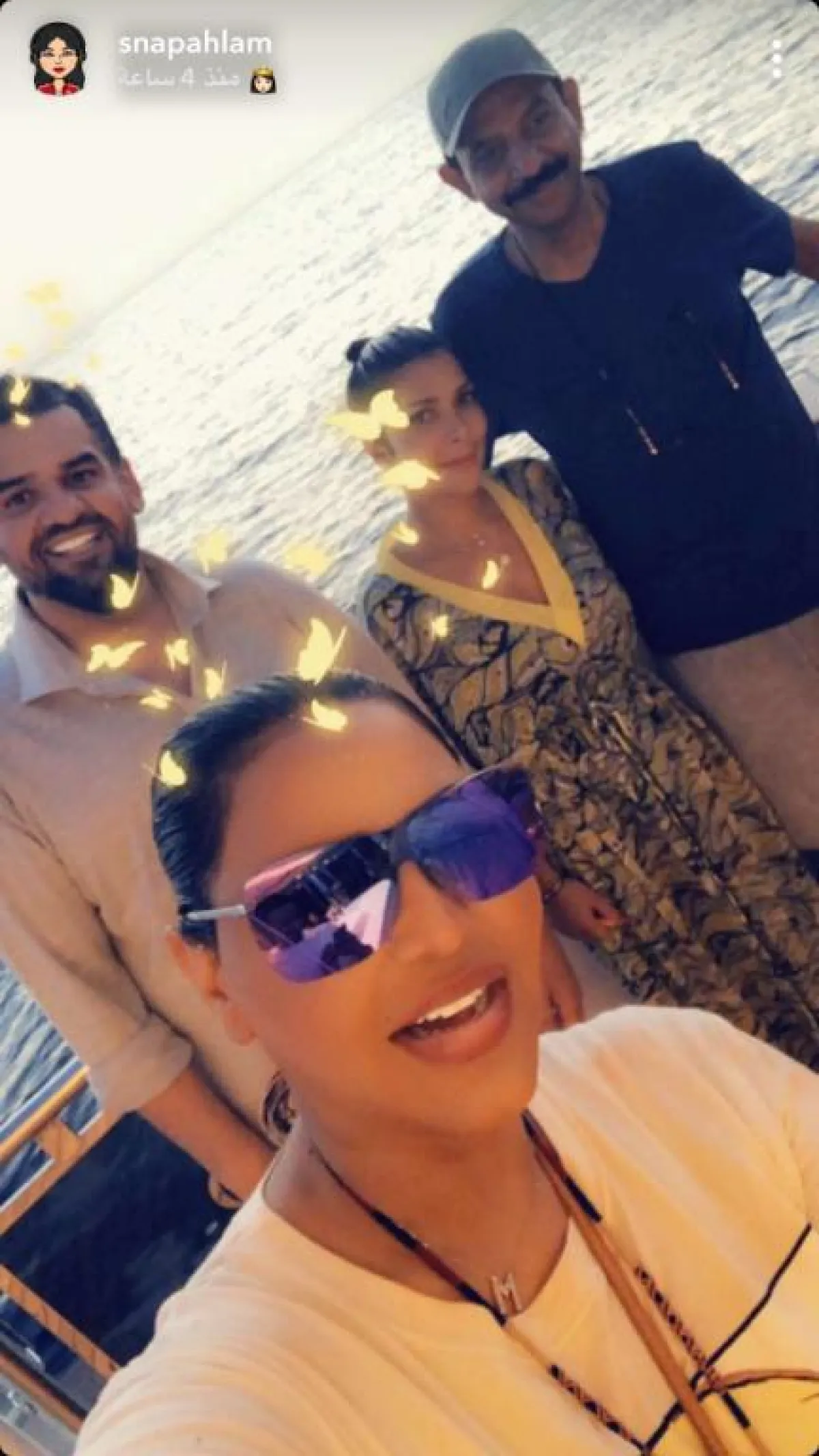 نشرت الفنانة أحلام عبر حسابها في "سناب شات"، صورة لها مع النجوم عبادي الجوهر، و حسين الجسمي، و أصالة نصري، أثناء رحلة بحرية باليخت في جزيرة إبيزا بإسبانيا.