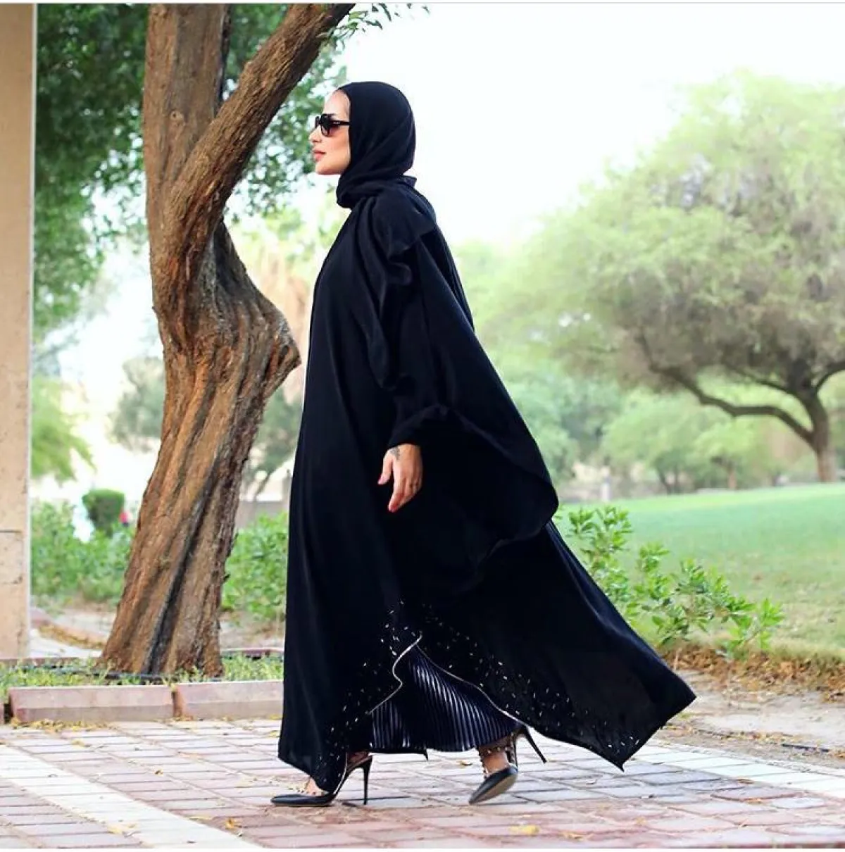 المدونة القطرية حنين الصيفي تمتلك ذوقا رفيعا غير متكلف في اختيارها العبايات، يناسب أعمار كل الصبايا، تحديدا الشابات، كاعتمادها العباية بالخامة المهدولة باللون الأسود، مع لمسة بسيطة من التطريزات موزعة كالنجوم لامعة في السماء، ونسقت معها حذاء الكاحل مفتوحا من الأمام بكعب عال، لتبدو الإطلالة كلاسيكية، ولكن العباية نفسها مع تغيير الحذاء لأرضي، يمكنك اعتمادها في النهار، ولكن بعيدا عن أوقات العمل.
