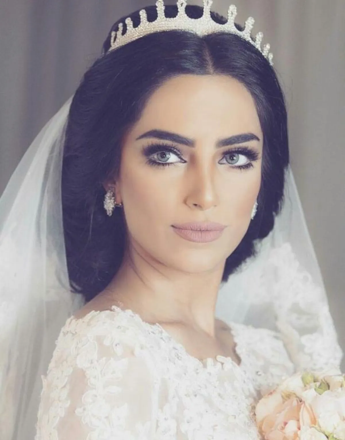 أو عمل فرق في منتصف الشعر، مع ترك الشعر منسدلًا على كلا الجانبين، ووضع التاج في المنتصف، والطرحة الطويلة منسدلة منه، أما إذا كنتِ تفضلين لمّ الشعر، فاعتمدي على اطلالة الـ Wet Look بالكثير من سبراي الشعر، ولمّه بالكمل للوراء، مع تاج الشعر أسفل الرأس.