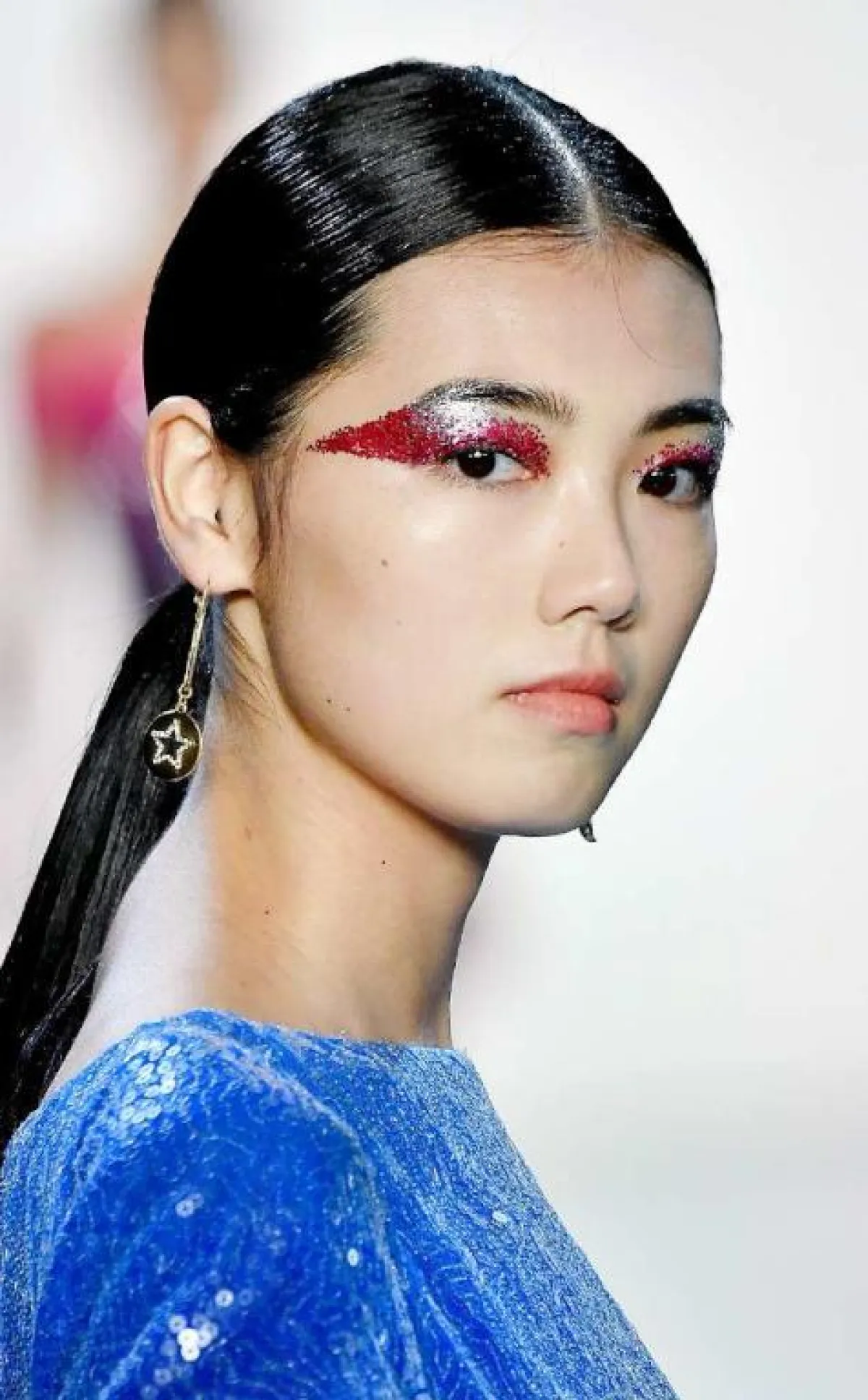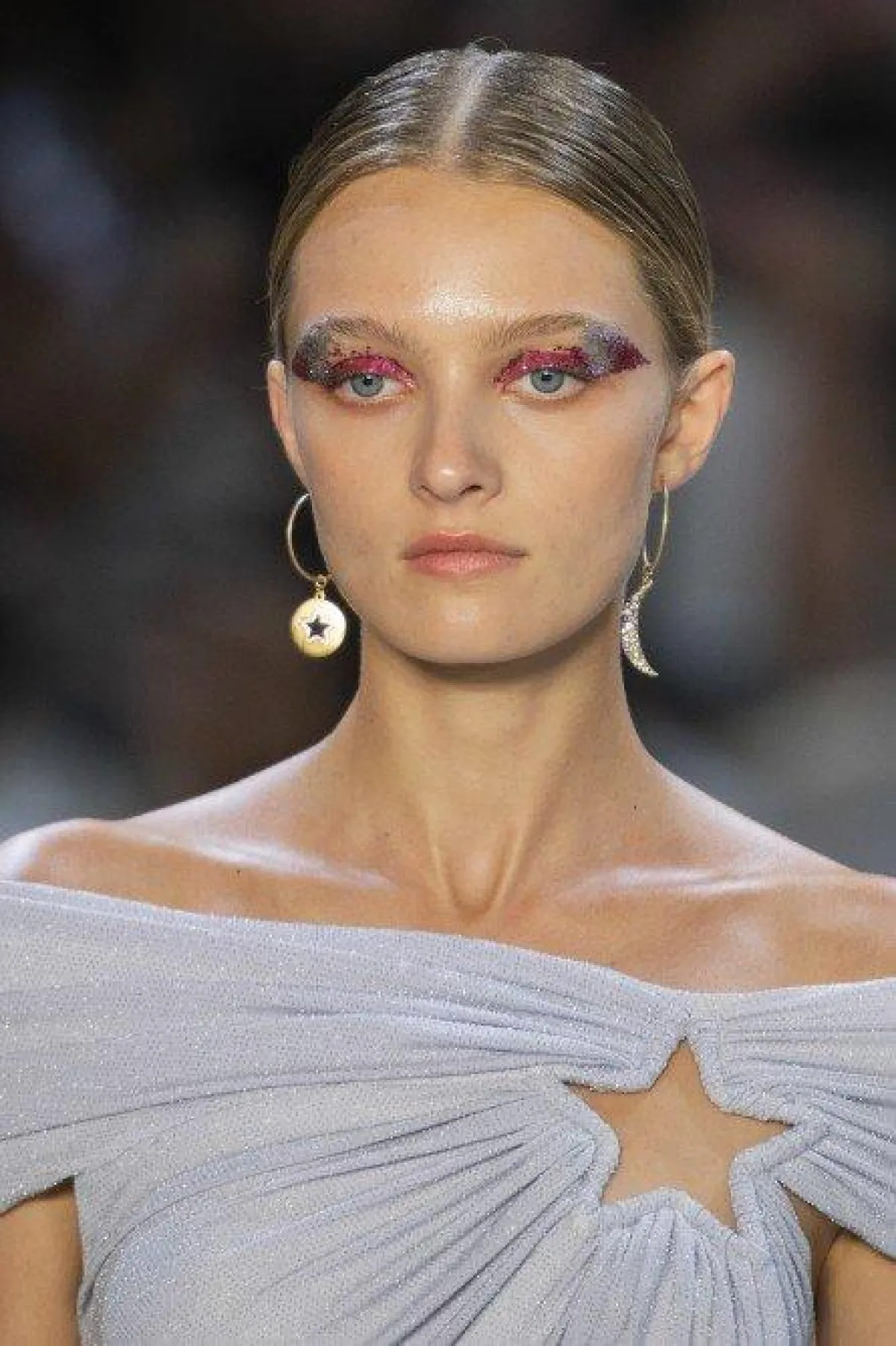يبدو أن مكياج العيون الملون والبراق سيكون من أبرز صيحات المكياج لربيع وصيف 2019، حيث ضجت منصات أسبوع الموضة في نيويورك برسمات عيون جريئة ملونة وبراقة، وشفاه بارزة. إذ أطلت عارضات Tadashi Shoji بمكياج سمته الأساسية ظلال العيون البراقة باللون الرمادي والبنفسجي المسحوبة الى الحدود الخارجية للعين بطريقة جريئة وخارجة عن المألوف. كذلك، ظهرت عارضات Lanyu بمكياج قوي وبراق، إذ اعتمد مكياج العيون البراق والقوي مع الشفاه الطبيعية تارة، وتارة أخرى الشفاه الملونة البارزة مع مكياج العيون الطبيعي.
