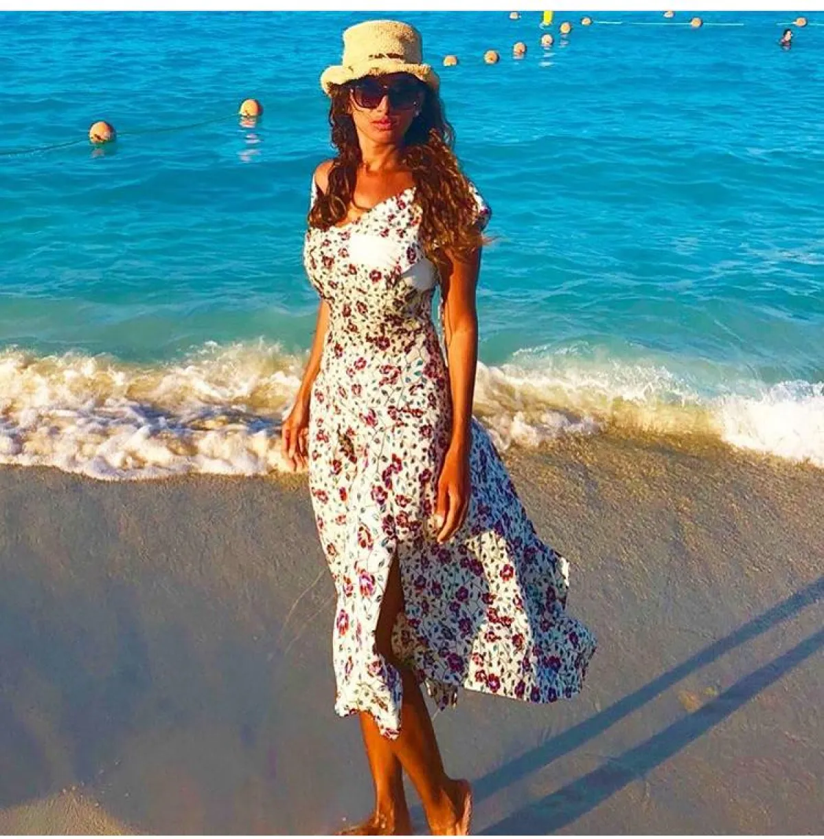 بينما اعتمدت النجمة المغربية سلمى أبي راشد، على فستان قصير فوق الركبة، مزيّن بالزهور متوسطة الحجم، منفوش قليلًا يُبرز طولها، نسقت معه حذاءً جريئًا أنثويًّا بدرجة الأحمر الصريح، مثاليًّا للفتيات العشرينيات.
