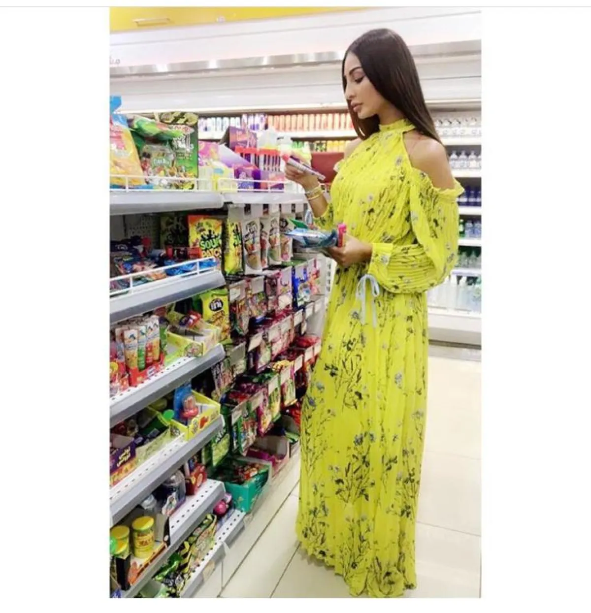 أما النجمة الخليجية أروى، فقد اعتمدت على الميدي الطويل، بأرضية باللون الأسود مع رسومات الورود باللون الفوشي وتدرجاته، وأورواق الشجر الخضراء، التي ننصح بها لأصحاب البشرة العنبية، بخاصة لو كان شعركِ أشقر مثل الصبغة التي اعتمدتها أروى.