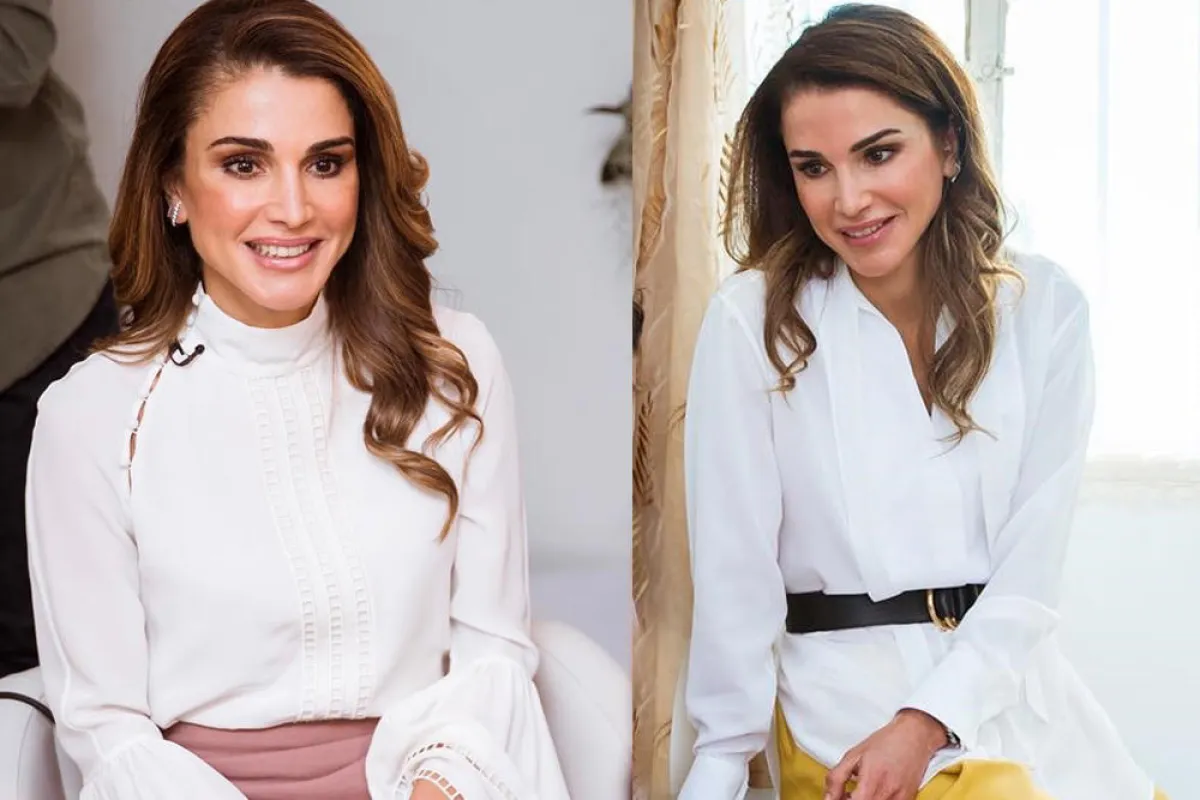 القميص الأبيض الأنثوي في صدارة إطلالات الملكة رانيا
