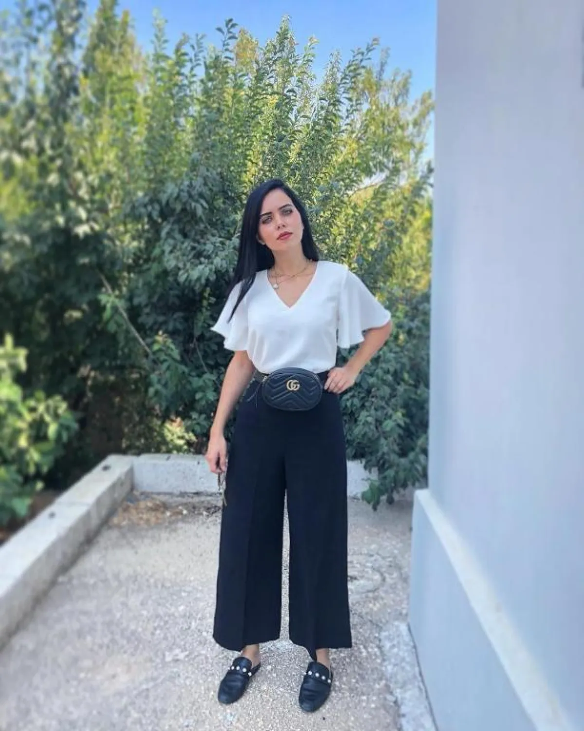 واختارنا 10 إطلالات من خزانة عزة زعرور يمكن أن تلهم الفتيات لاختيار القطع المناسبة للجامعة، لاسيما وأن الدراسة على الأبواب وحان وقت الاستعداد لها بخزانة أنيقة، ونبدأ بإطلالة مونوكروم تجمع بين قطعة فوية بيضاء بسيطة مع بنطلون من صيحة "culottes" وزينت عزة الإطلالة بحقيبة الخصر التي تعد قطعة أساسية في موضة 2018 تناسب فتيات الجامعة، وأخيراً نسقتها مع حذاء من صيحة "المول".