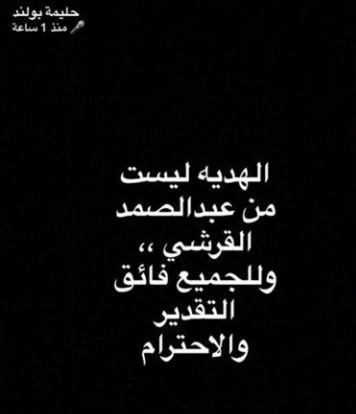 ويبدو أن هذا التهديد جعل حليمة بولند تستدرك الأمر وتنفي ما قالته في الفيديو، ونشرت بوست قالت فيه "الهدية ليست من عبد الصمد القرشي وللجميع فائق التقدير والإحترام".