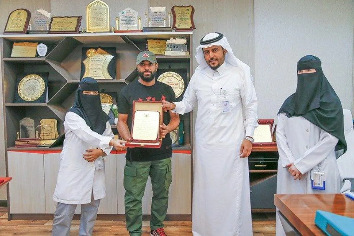 من جانبه قام مدير المستشفى الأخصائي "فهد بن محمد الممخور" بتقديم شكره وتقديره لأعضاء الفريق على مبادرتهم بتكريم الممرضة "سارة صعب"، كما قدم شكره وتقديره للممرضة على مبادرتها وبذلها جهودًا خارج وقت عملها لإنقاذ حياة المصابَيْن.