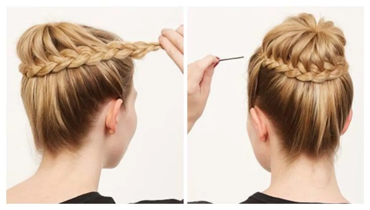 عند التطبيق، ارفعي شعركِ لأعلى بشكل عشوائي غير محكم ثم اربطيه ولفيه بعد ذلك حول نفسه، مع مراعاة تثبيته عبر أدوات الشعر المحكمة وسبراي التثبيت.