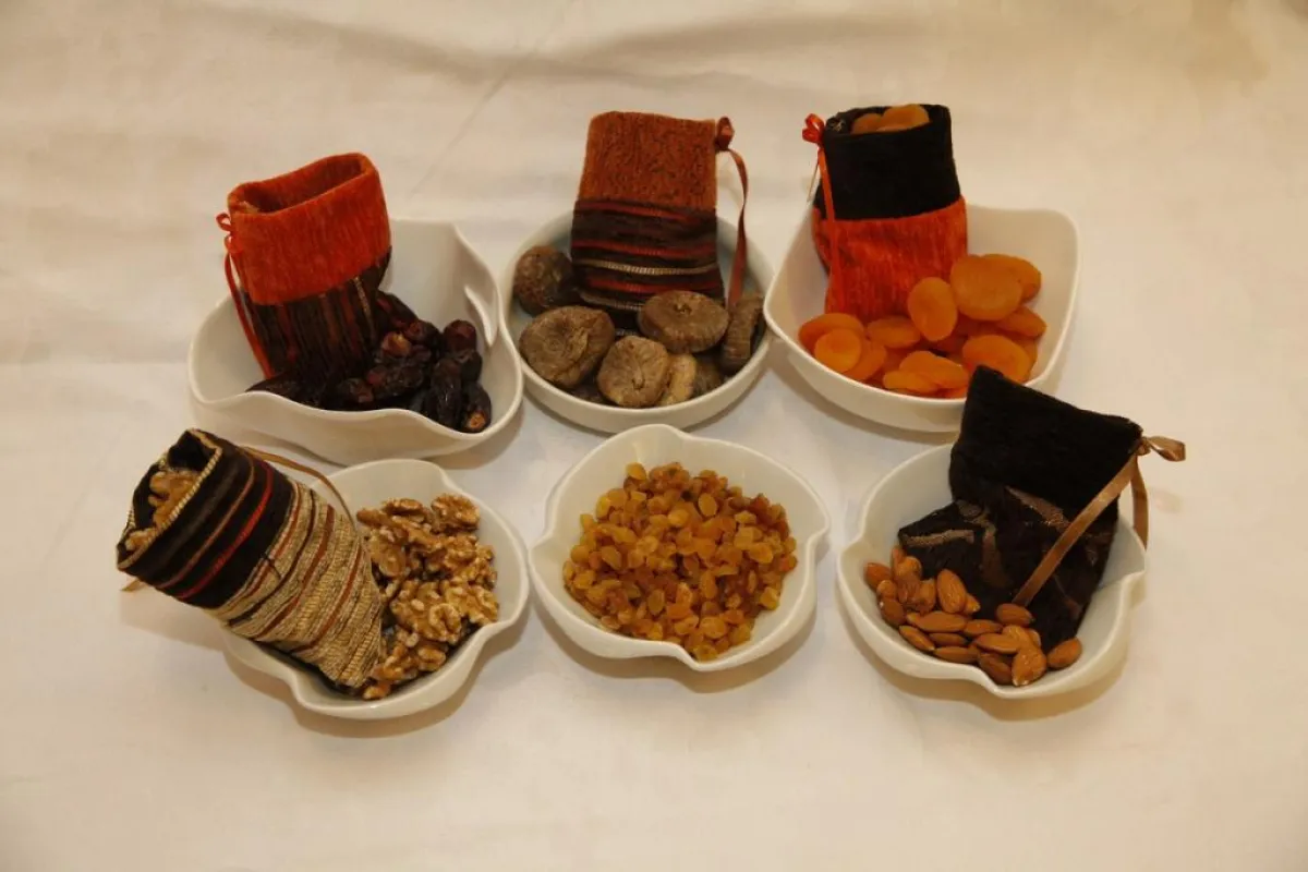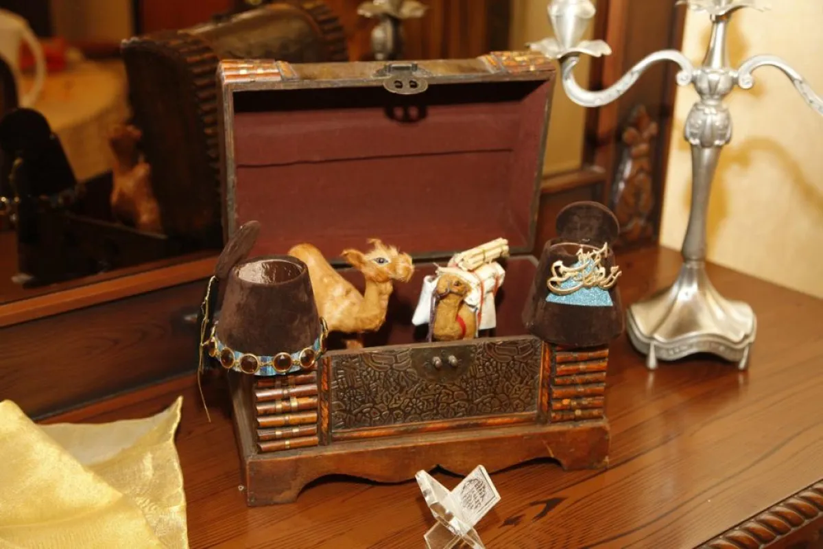 وللسبحات موقع على هذه الطاولة، فضلاً عن عدد من الأكياس الصّغيرة المشغولة يديوياً بشكل فنّي لحمل المكسّرات وأباريق الماء والعصير مع الأكواب.