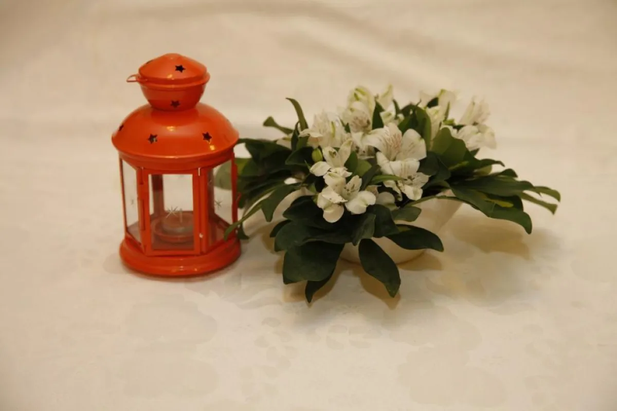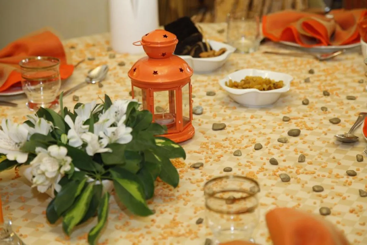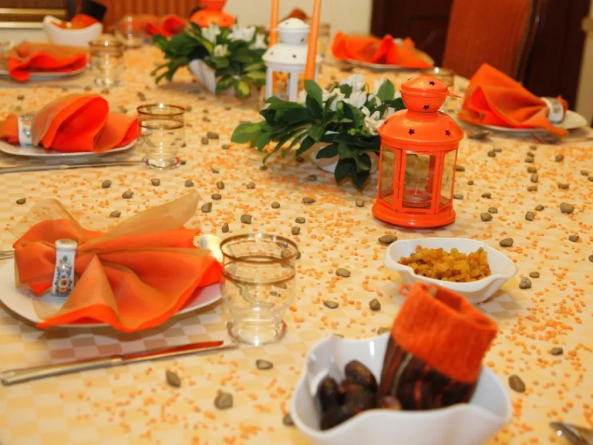 - ضعي فانوس رمضان في منتصف الطّاولة، مع إضاءته.