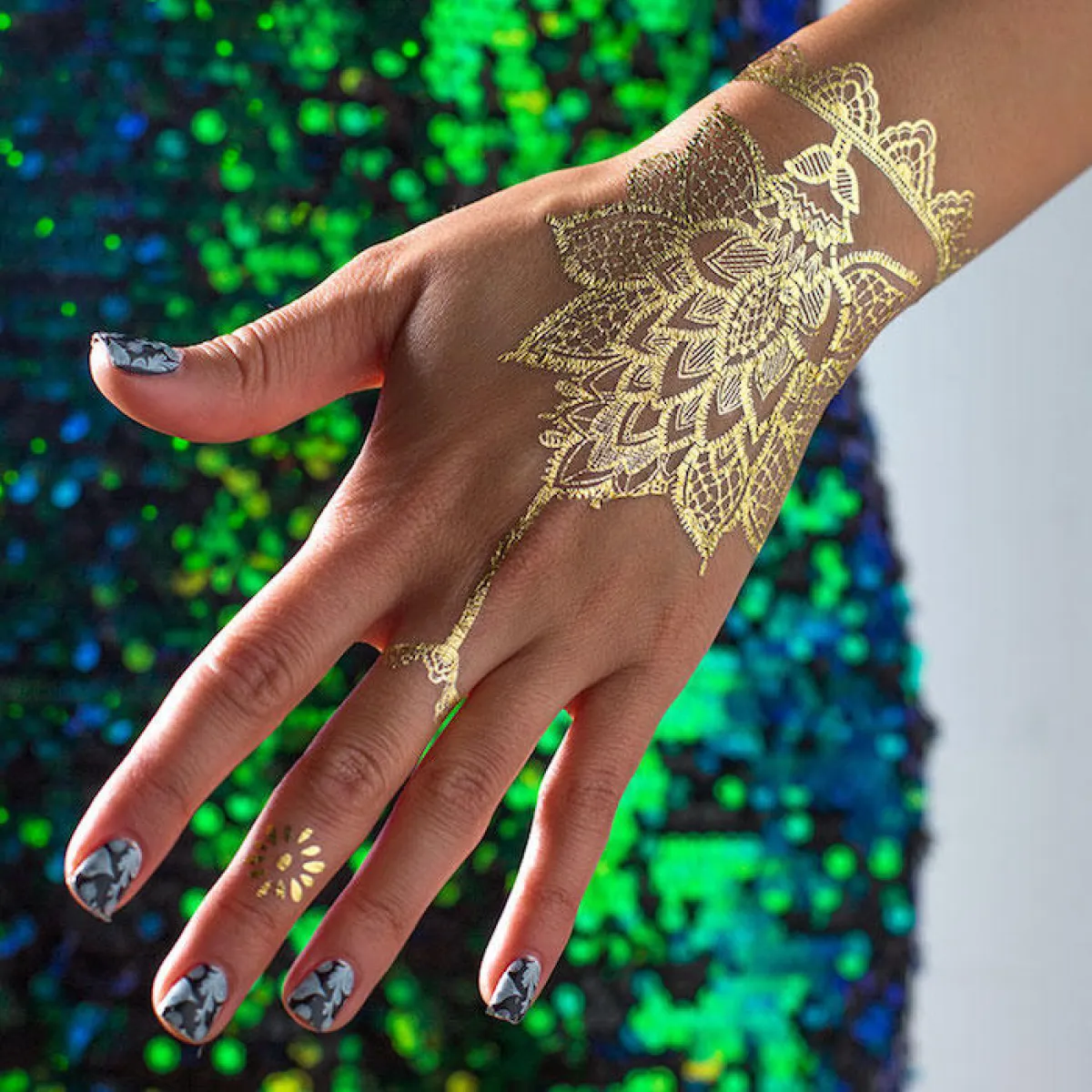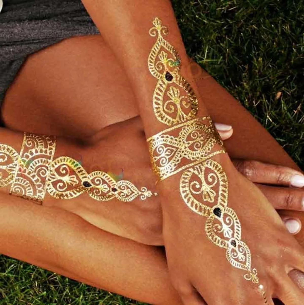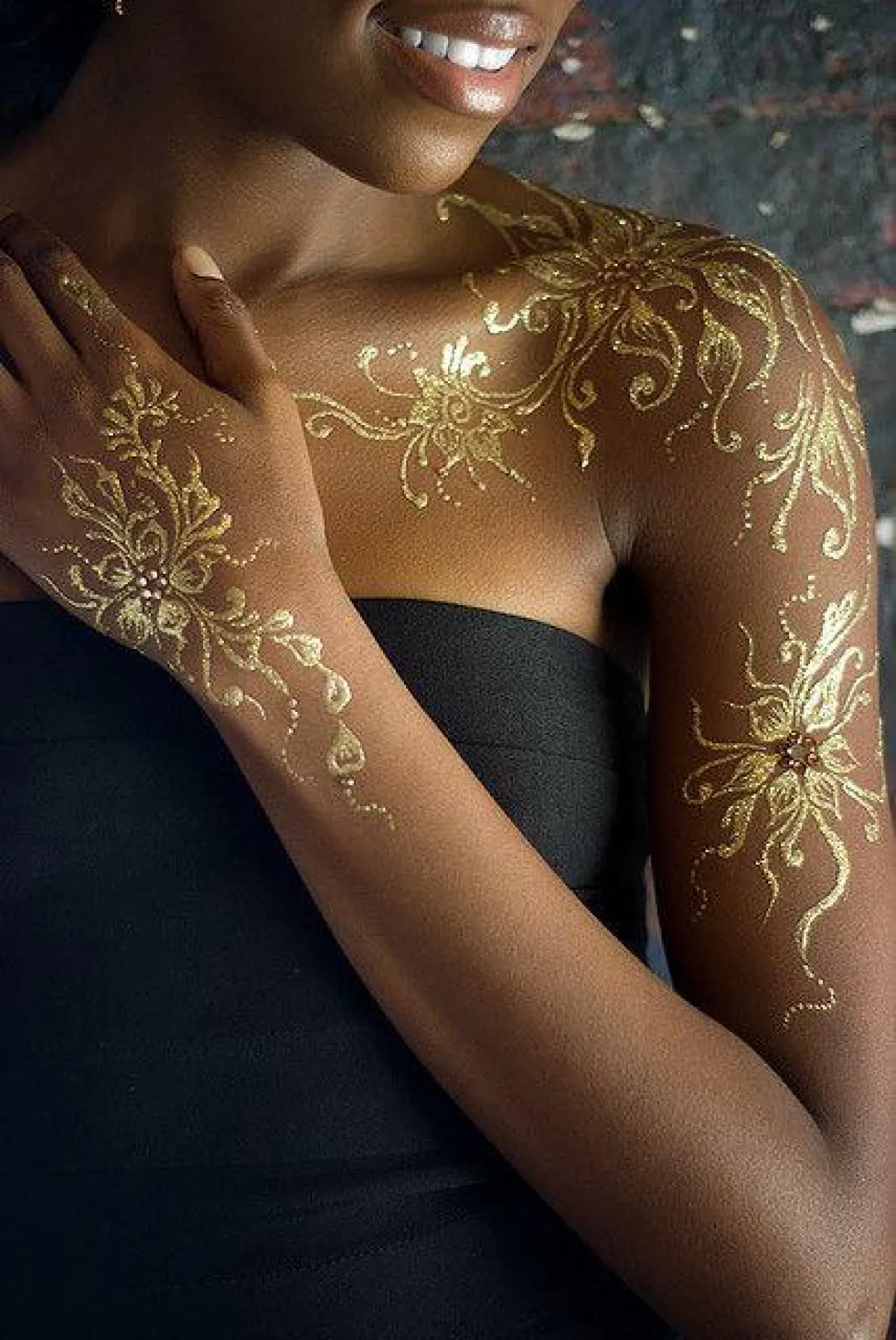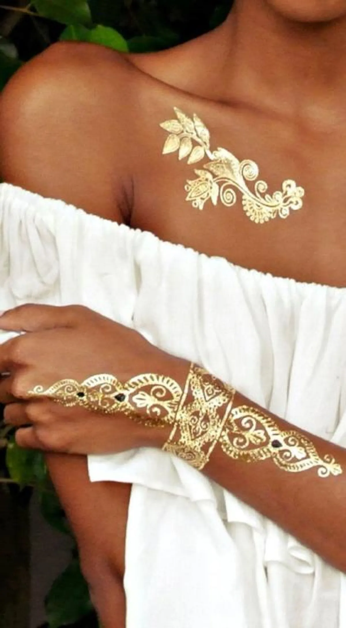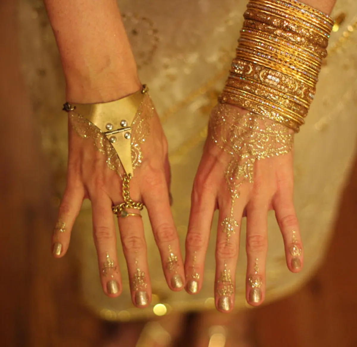 أيضًا لصديقات العروس يمكنهنّ استخدام الحناء الذهبية لرسمها على أجسادهنّ ليلة الزفاف، واختيار أشكال جميلة وجديدة، مثلًا نقش أشكال اكسسوارات على أيديهنّ أو أصابعهن.