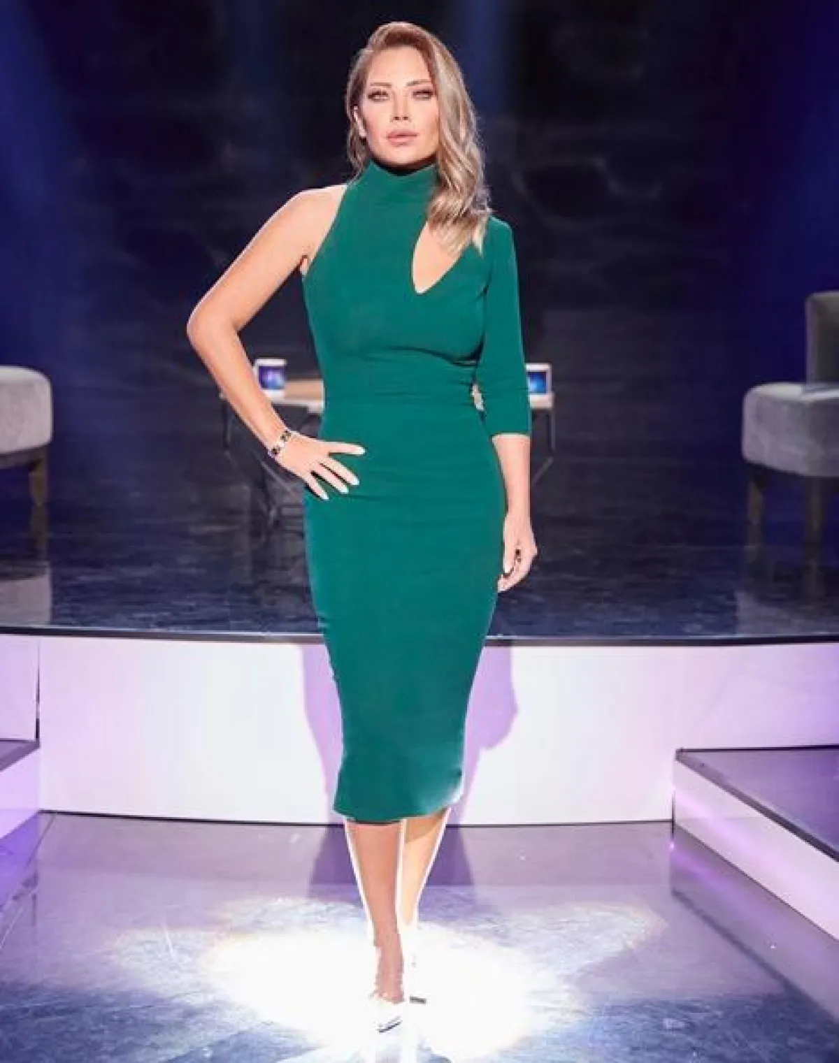 اختارت سلافة معمار مؤخرًا لاطلالة لها في برنامج لزميلتها أمل عرفة، فستانًا باللون الأخضر الزيتي من تصميم أنطوان القارح، وقد ناسب لون شعرها وبشرتها وناسب قوامها أيضًا، وقد نسقت معه حذاءً بكعب عالٍ باللون البيج، وزينت اللوك بسوار ناعم.