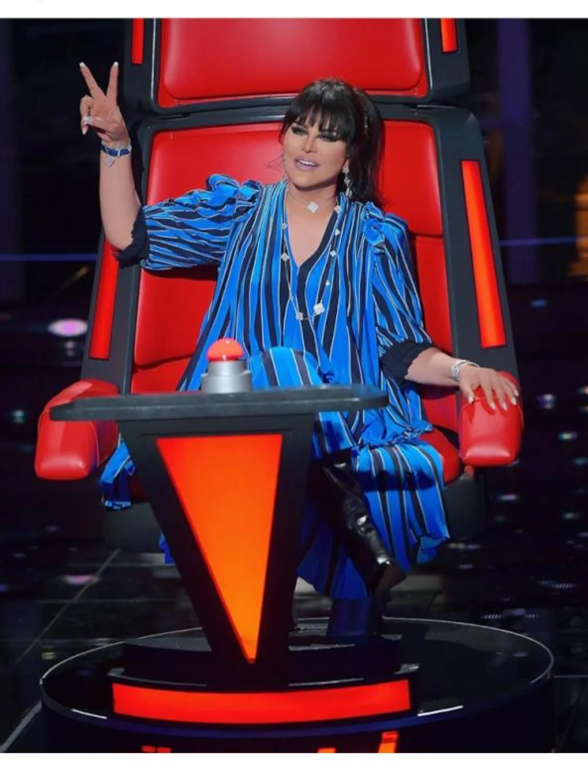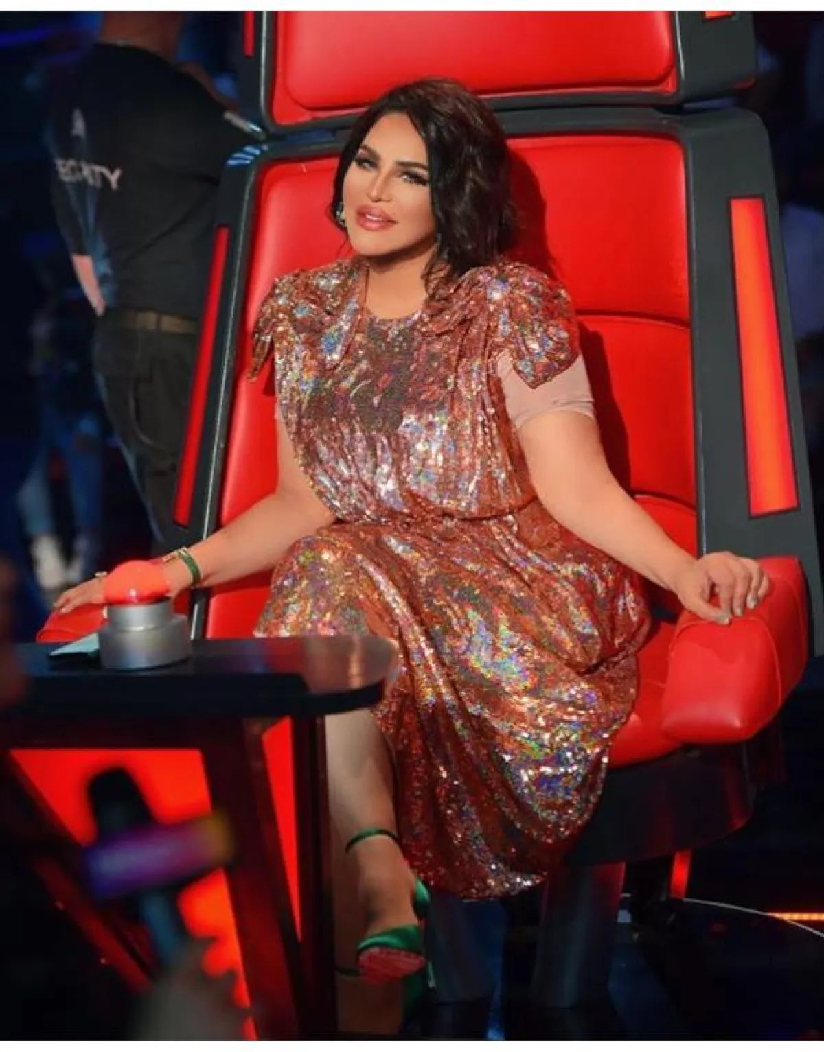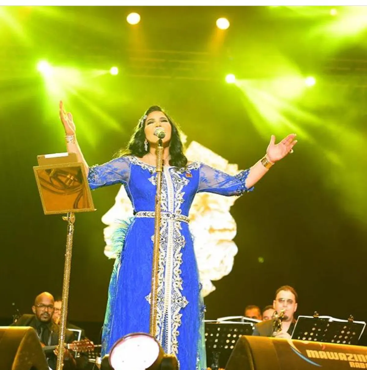 الأصفر المشرق من الألوان الرائجة هذا العام، فمن الطبيعي أن نجد أحلام تختار هذه الدرجة، كـ الفستان المطرز مع الشراشيب من توقيع العالمي زهير مراد Zuhair Murad، وهو الأنسب لدرجات بشرتها.