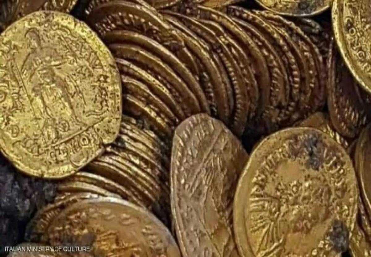 أعلنت إيطاليا العثور على كنز ثمين داخل نطاق أراضيها الشمالية، عبارة عن جرة مملوءة بقطع ذهبية نفيسة يزيد عمرها عن 14 قرنًا.