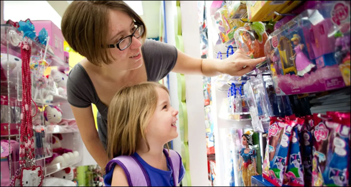- إنه سيناريو يشترك فيه جميع الآباء في شتى أرجاء العالم من جميع الفئات الاجتماعية والاقتصادية. يدخل الأبوان والطفل إلى متجر لشراء غرض محدد، تقع عينا الطفل على شيء مختلف تماماً.