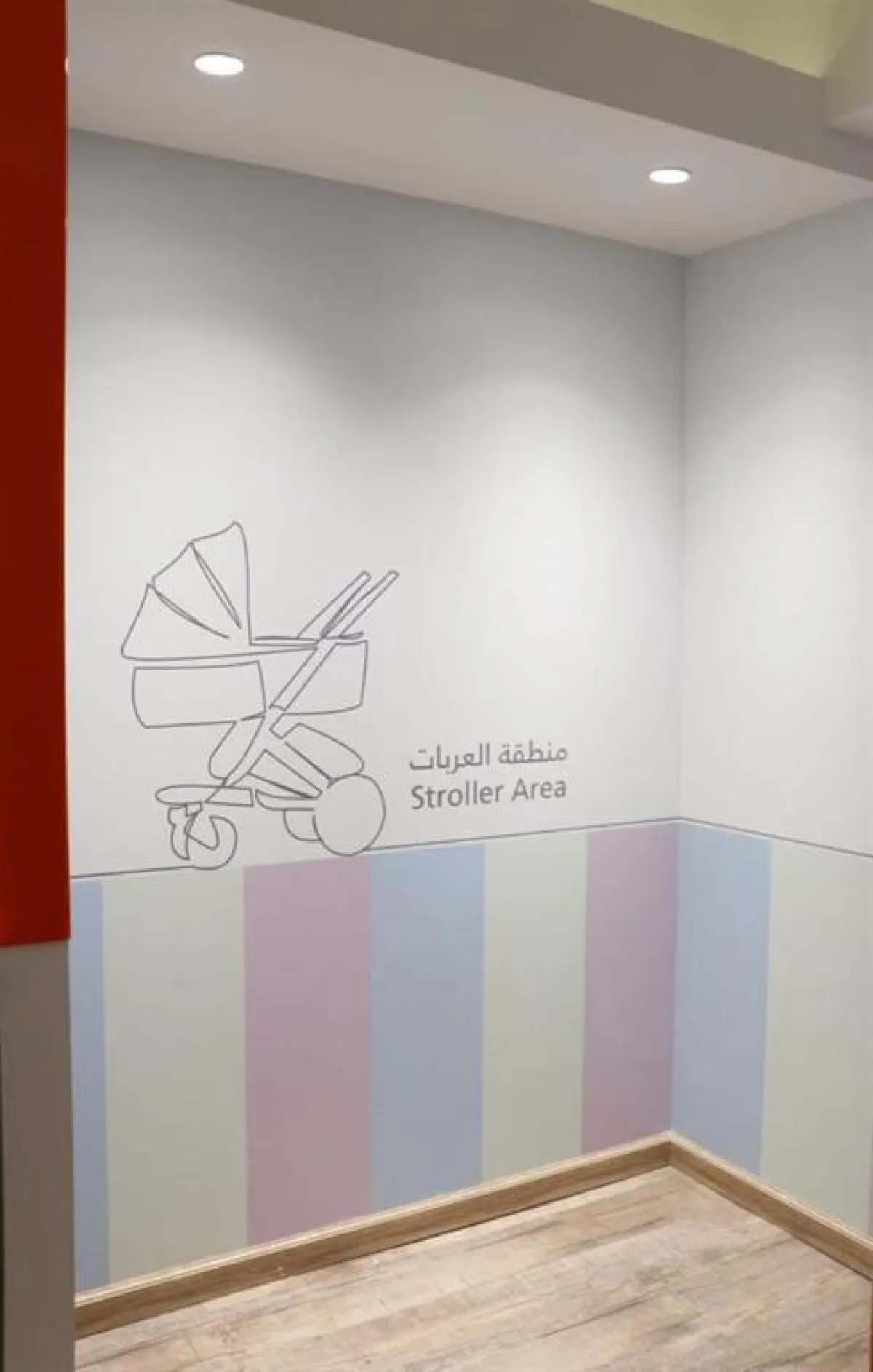 وتحتوي الأماكن الجديدة التي أنشئت في صالات السفر الدولي على مناطق لعربات الأطفال، ومناطق لتبديل حفاظات الأطفال، ومناطق للإرضاع، بالإضافة إلى توفير مستلزمات للأطفال الرضع.