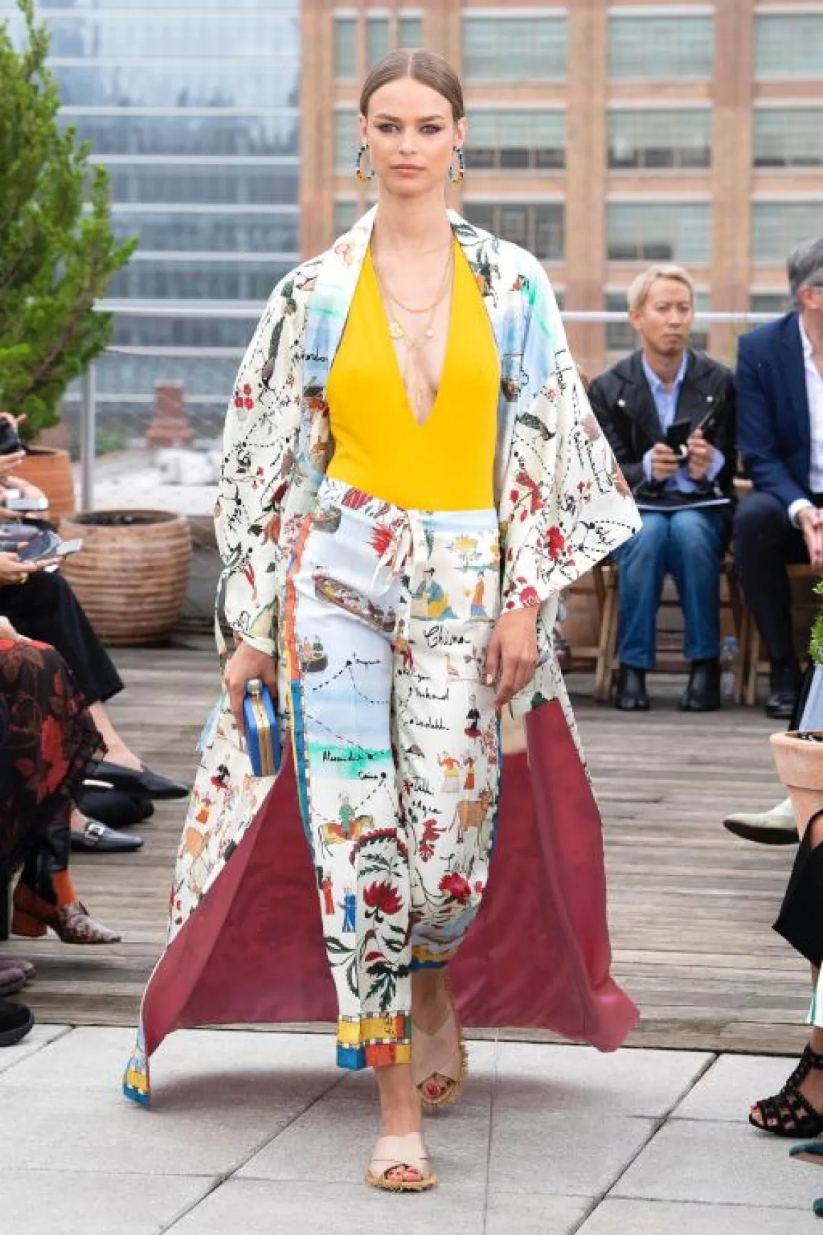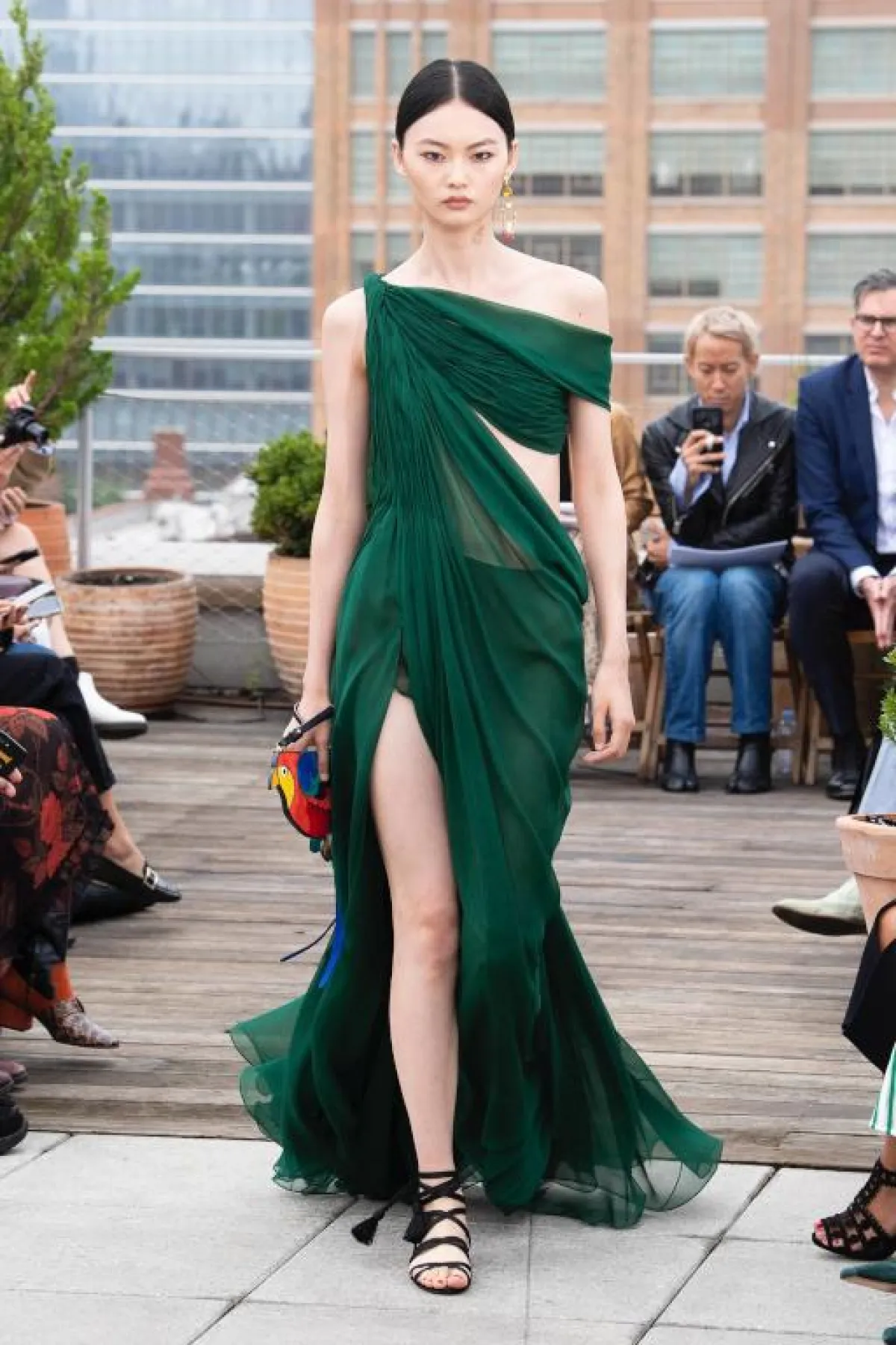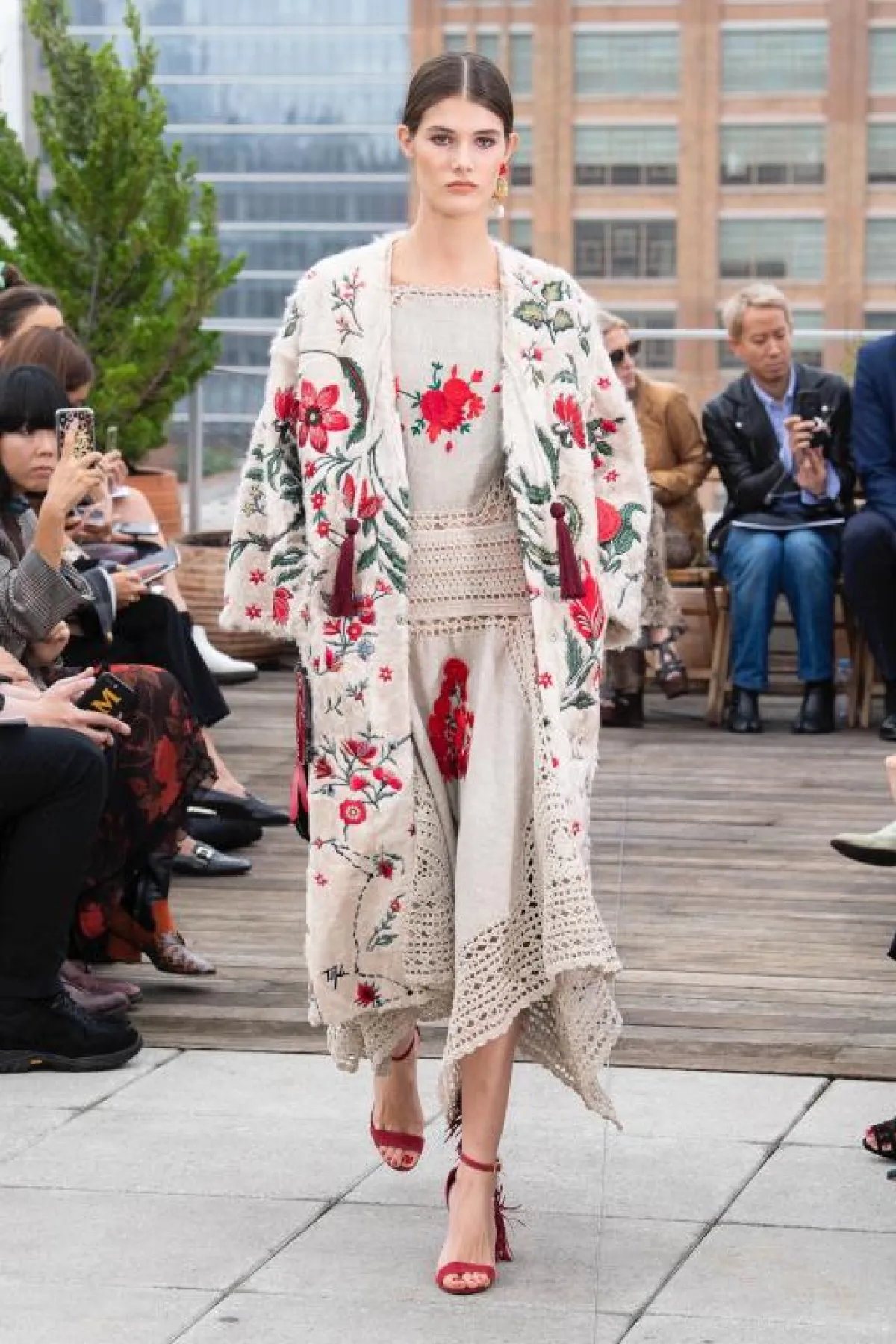 قدّمت دار “أوسكار دي لا رينتا” Oscar de la Renta مجموعة غنية جدًّا ولافتة، تنوعت مصادر الوحي فيها بشكل ملحوظ، لكن اجمالًا كانت من الرحلات الصيفية التي قام بها مؤسّسا الدار، من إيطاليا.. إلى مراكش.. إلى الهند، والنتيجة كانت مزيجًا من الحضارات بدا واضحًا في التصاميم التي تنوعت بين النمط الشرقي الغني، مع النمط الغربي المُترف، فشاهدنا التعريقات المتنوعة والزركشات والتطريزات الفنية، كذلك شاهدنا الفساتين التي أعادتنا الى حقبة الخمسينيات مع الخصر المحدد والتنانير المنفوشة، إضافة إلى الريش والشراريب التي أضافت لمسات فنية للتشكيلة.