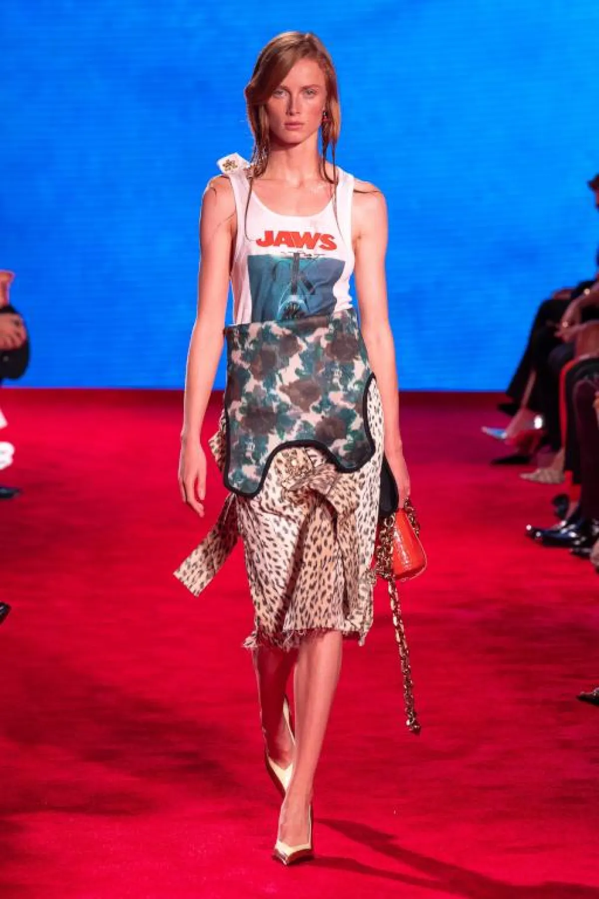 استوحى راف سيمونز Raf Simons المدير الإبداعي لدار “كالفين كلاين” Calvin Klein مجموعة ربيع وصيف 2019 من السينما -والسينما لطالما كانت مصدرًا كبيرًا للوحي بالنسبة له- وبشكل خاص من فيلم “ذا جو” The Jaw الذي يتحدث عن سمكة قرش مفترسة في البحر، وفيلم “ذا غرادجويت” The Graduate، وقد بدت عناصر من الفيلمين واضحة في تفاصيل المجموعة، حيث شاهدنا القمصان القطنية وعليها اسم فيلم The Jaw، إضافة إلى القطع التي استوحيت من ملابس الغوص والتي بدت واضحة على التوبات، والتي تم تنسيقها بشكل أنيق مع التنانير الميدي، كذلك شاهدنا التصاميم التي استوحيت من ملابس الجامعة وقبعات التخرج، كما في فيلم The Graduate. وقد ضمت المجموعة التصاميم النسائية والرجالية على حد سواء.