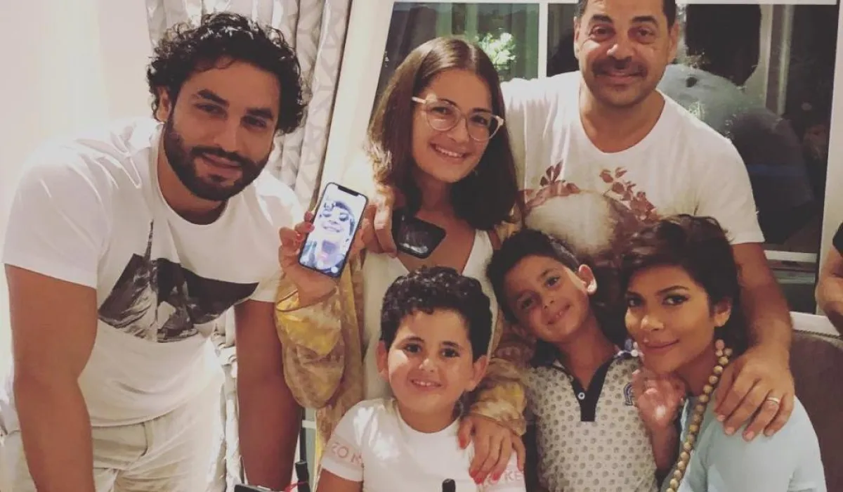 أصالة وطارق العريان وتوأميها وابنتها شام من حفل عيد الميلاد