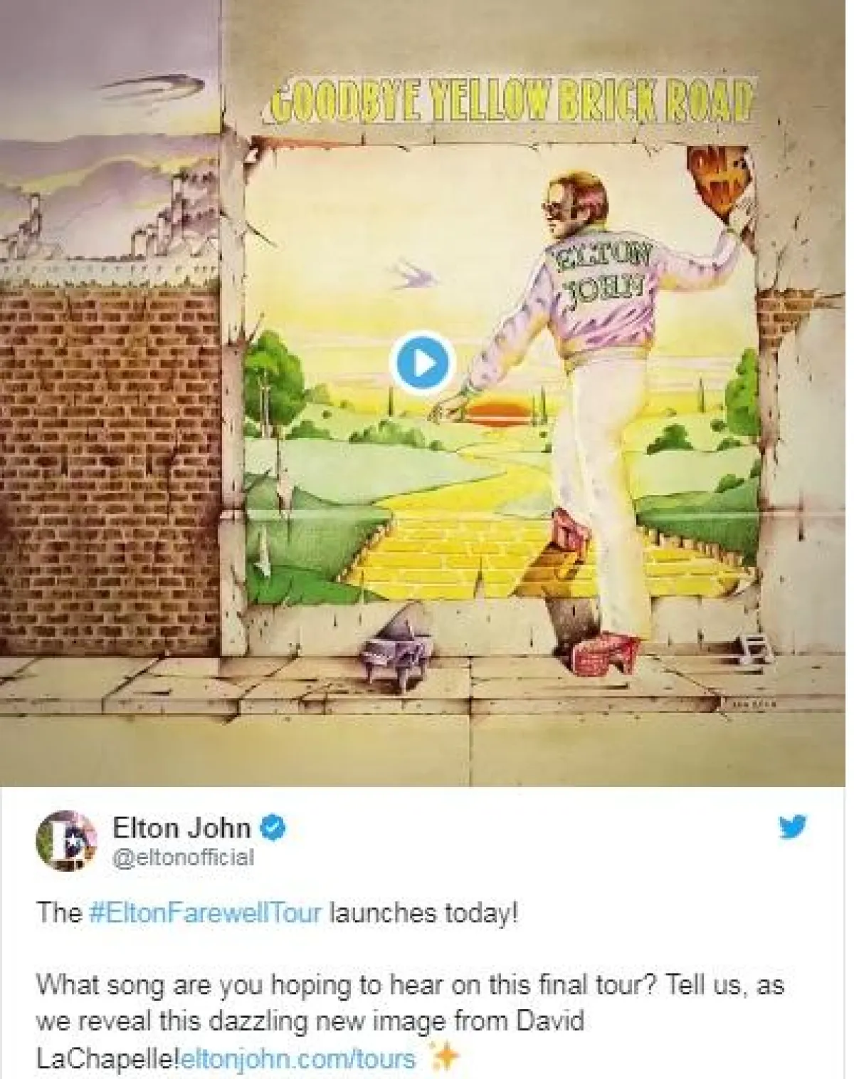 وافتتح أيقونة البوب أول حفلات جولة " Farewell Yellow Brick Road " في بنسلفانيا في الولايات المتحدة. ومن المقرر أن يحيي أكثر من 300 حفلة في مختلف أنحاء العالم خلال السنوات الثلاثة المقبلة.