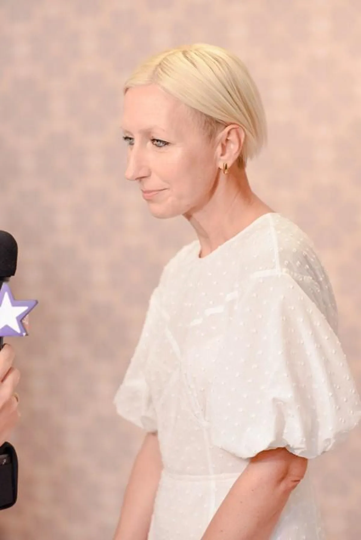 ارتدت نينا أجدال فستان "بوب سكالوب" باللون العنبي.