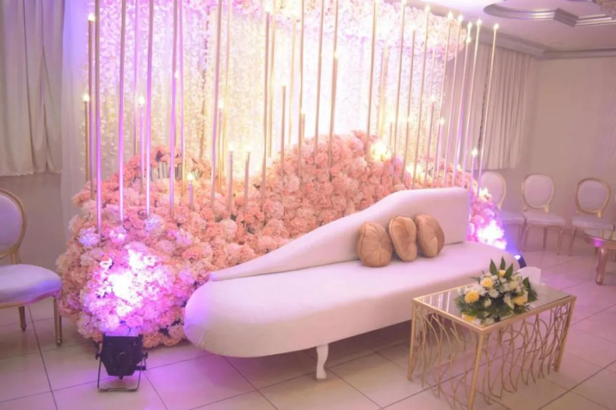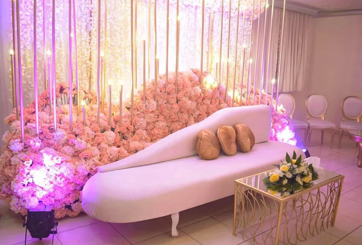 *عليكِ أن تُحدّدي ميزانيّة حفلكِ قبل البدء بأيّ خطوة، فبناءً على الميزانيّة يتمّ طرح الخيارات الأقرب والأكثر واقعيّة، فربّما يستدعي الأمر إضافة ثريّاتٍ من الكريستال، أو شموع تتدلّى من السقف، أو ورود تُزيّن بها الجدران، أو ربّما تستدعي الصالة تغيير ألوان الجدران، أو الاستعانة بأقمشة معيّنة، أو إضافة خشبٍ، وغير ذلك.