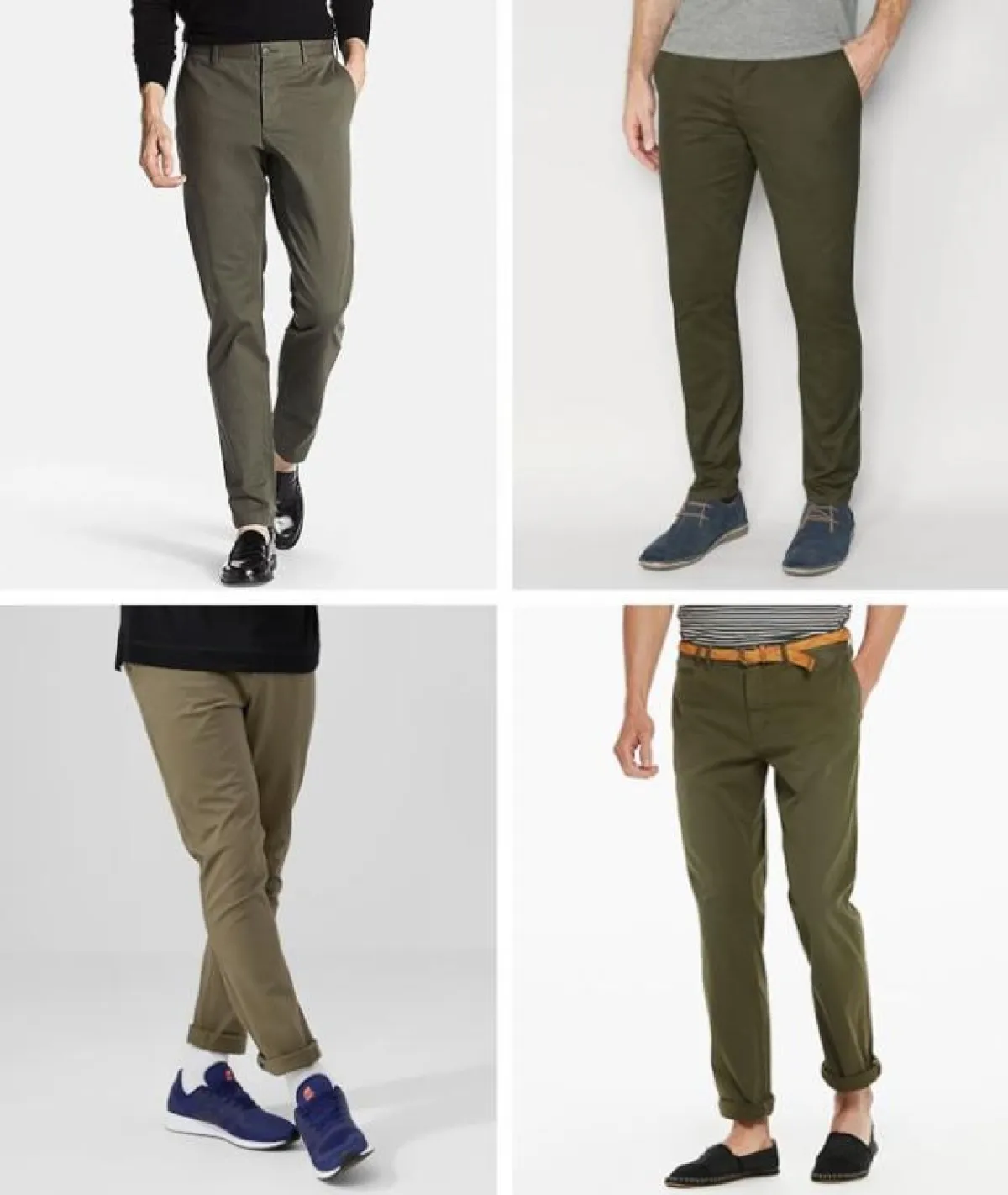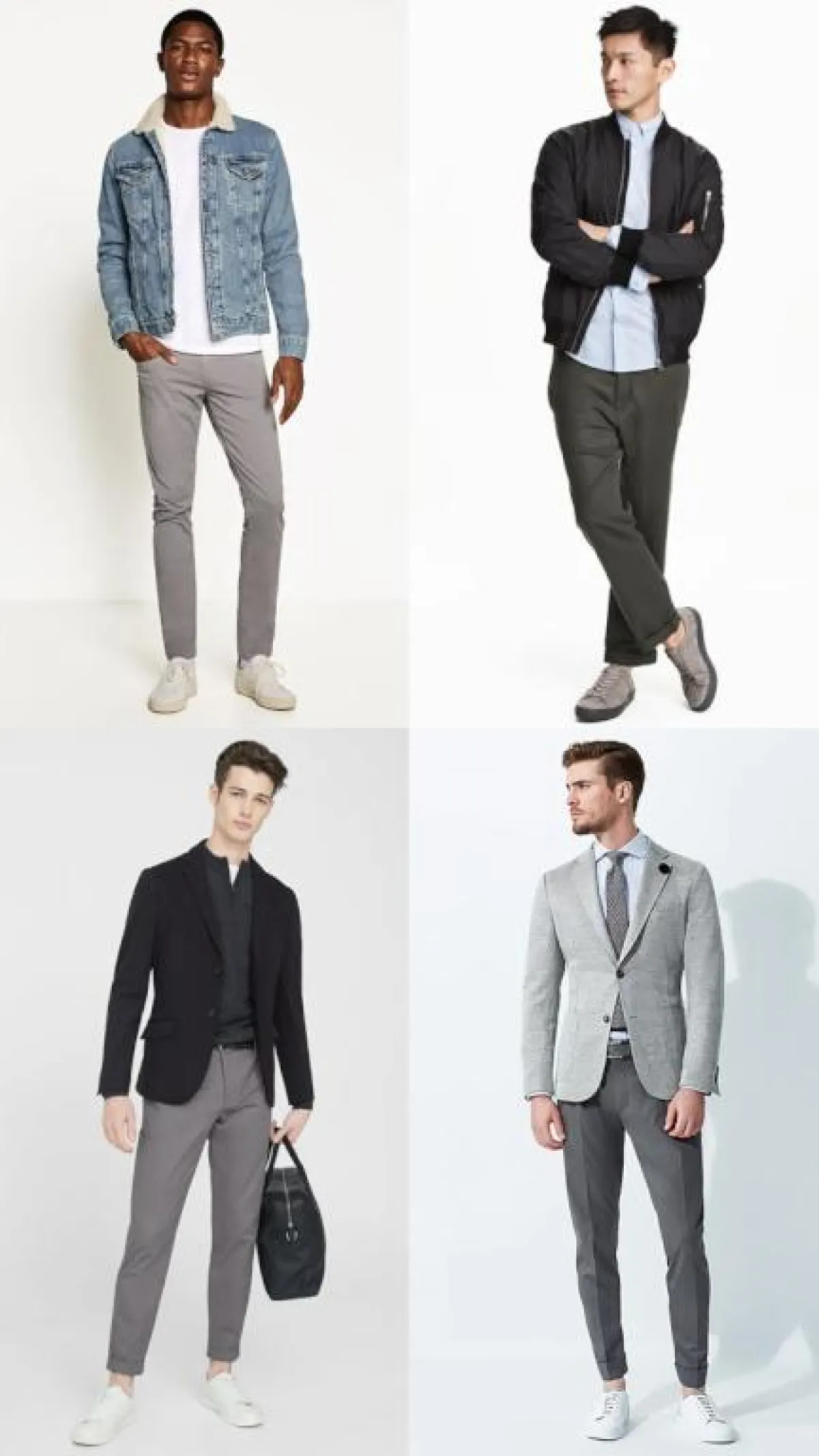 هناك 6 ألوان أساسية تلعب دور الجينز نفسه، ولكنها تخلق حالة من التنوع؛ حتى لا يبدو الرجل تقليدياً وخارج سباق الموضة، ويُنصح بأن تشكل هذه الألوان مجموعة البنطلونات التي يقتنيها الرجل؛ حتى تسمح له بإطلالة متجددة كل يوم.