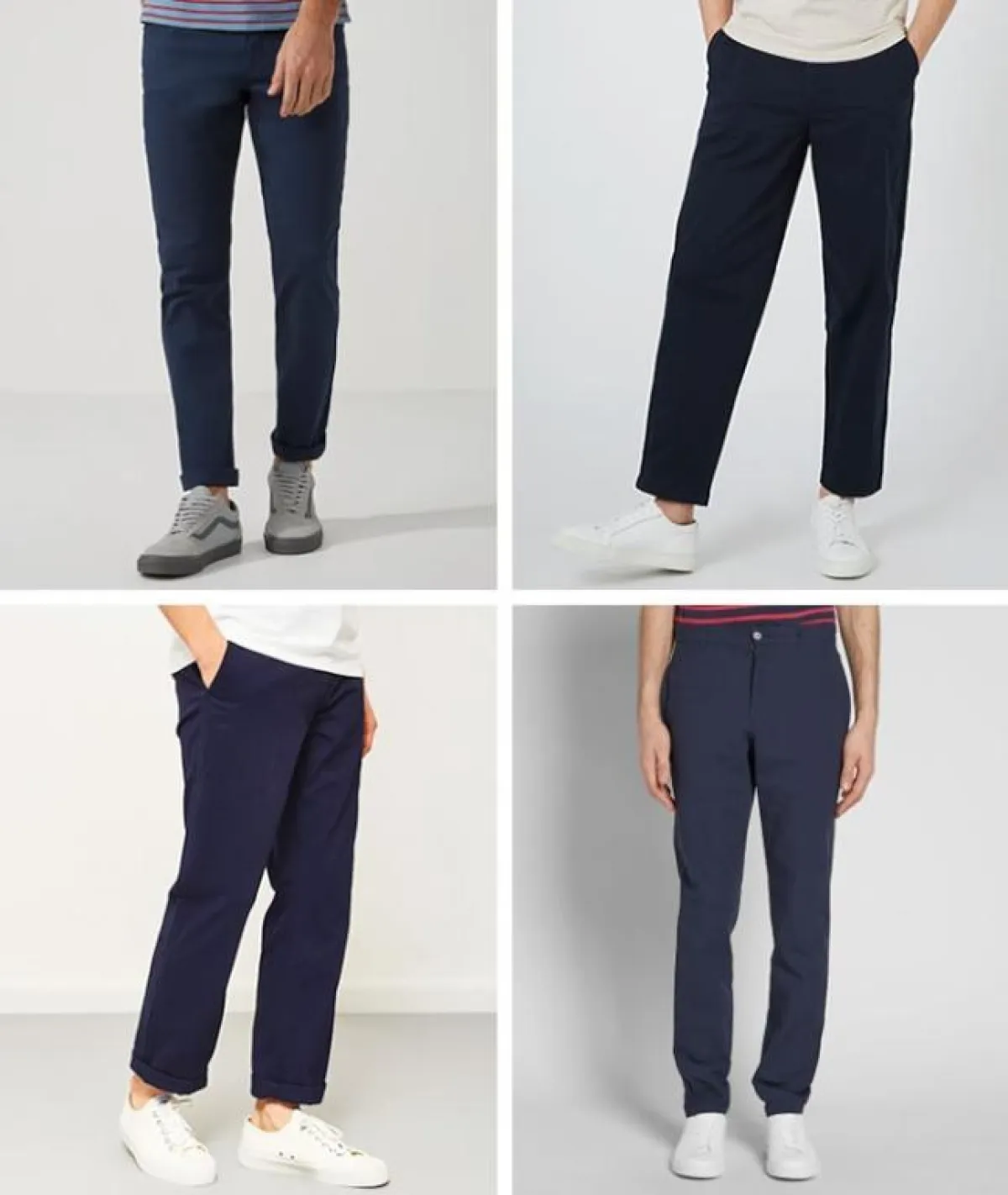 ويعد اللون الكحلي وتدرجات الأزرق الداكن هي البديل الأنيق للجينز، ويسهل تنسيقه مع أي قطعة فوقية بسيطة، مثل التي شيرت أو القميص الأبيض، أو تي شيرت سماوي مع سنيكرز رياضي، والمميز أن اللون الكحلي يمكن تنسيقه لإطلالة عمل رسمية أو لإطلالة كاجوال، بحسب الرغبة.