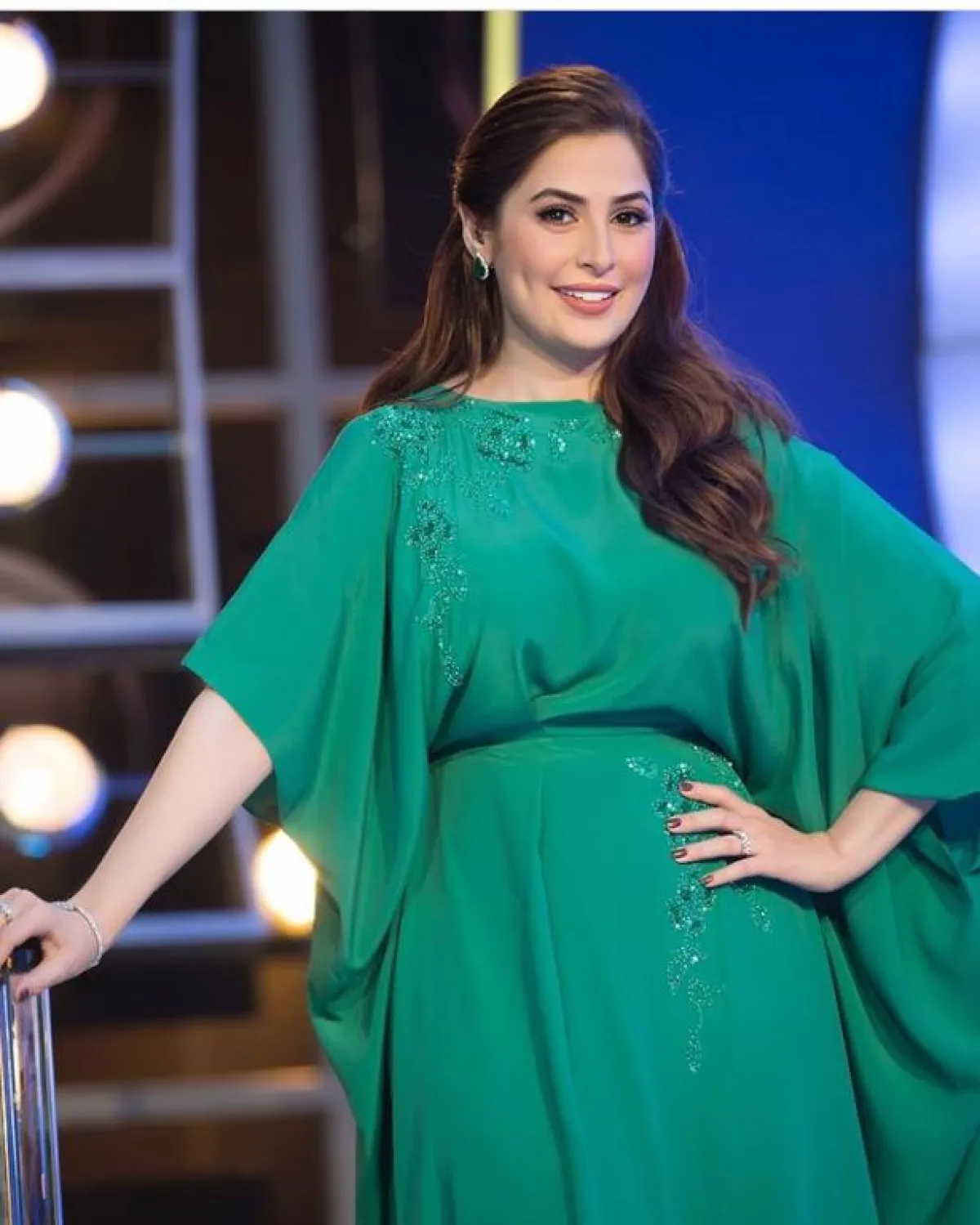 يمكنكِ الاعتماد على القفاطين الواسعة والمحتشمة للسهرات العائلية بدرجات الأخضر المختلفة، كاطلالة الإعلامية مريم سعيد مع التطاريز الذهبية للقفطان باللون الفاتح، وحزام الخصر المتسوحى من فروع الأشجار، ونسقي معه حذاءً بـ الكعب العالي باللون الذهبي لاطلالة عربية بامتياز.