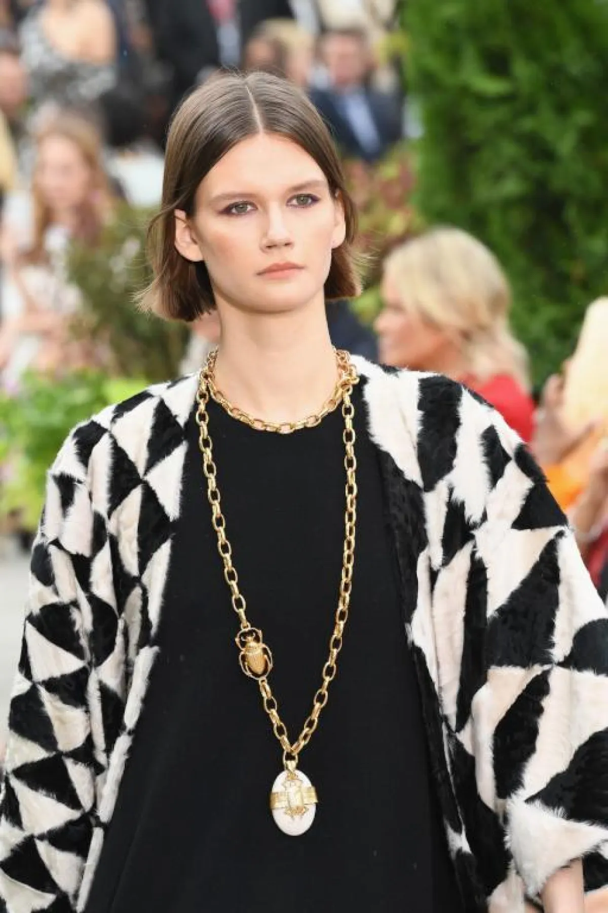 السلاسل الطويلة مع رسومات الحيوانات المتجسدة والمنحوتة من المعدن، كانت بارزة بشكل كبير بأسبوع الموضة للأزياء، كـ السلسة الطويلة من أوسكار دو لارينتا Oscar de la Renta، اختاريها إن كان الفستان بسيطًا وناعمًا، ومفتوحًا مثلًا من ناحية الصدر.