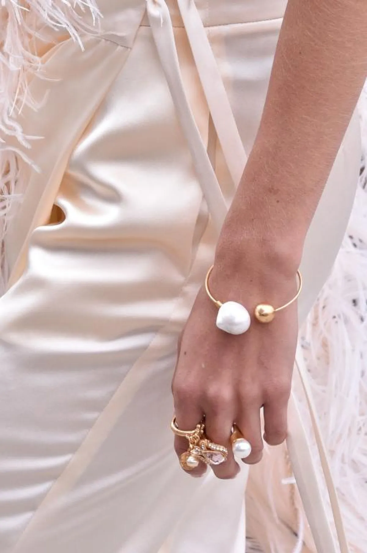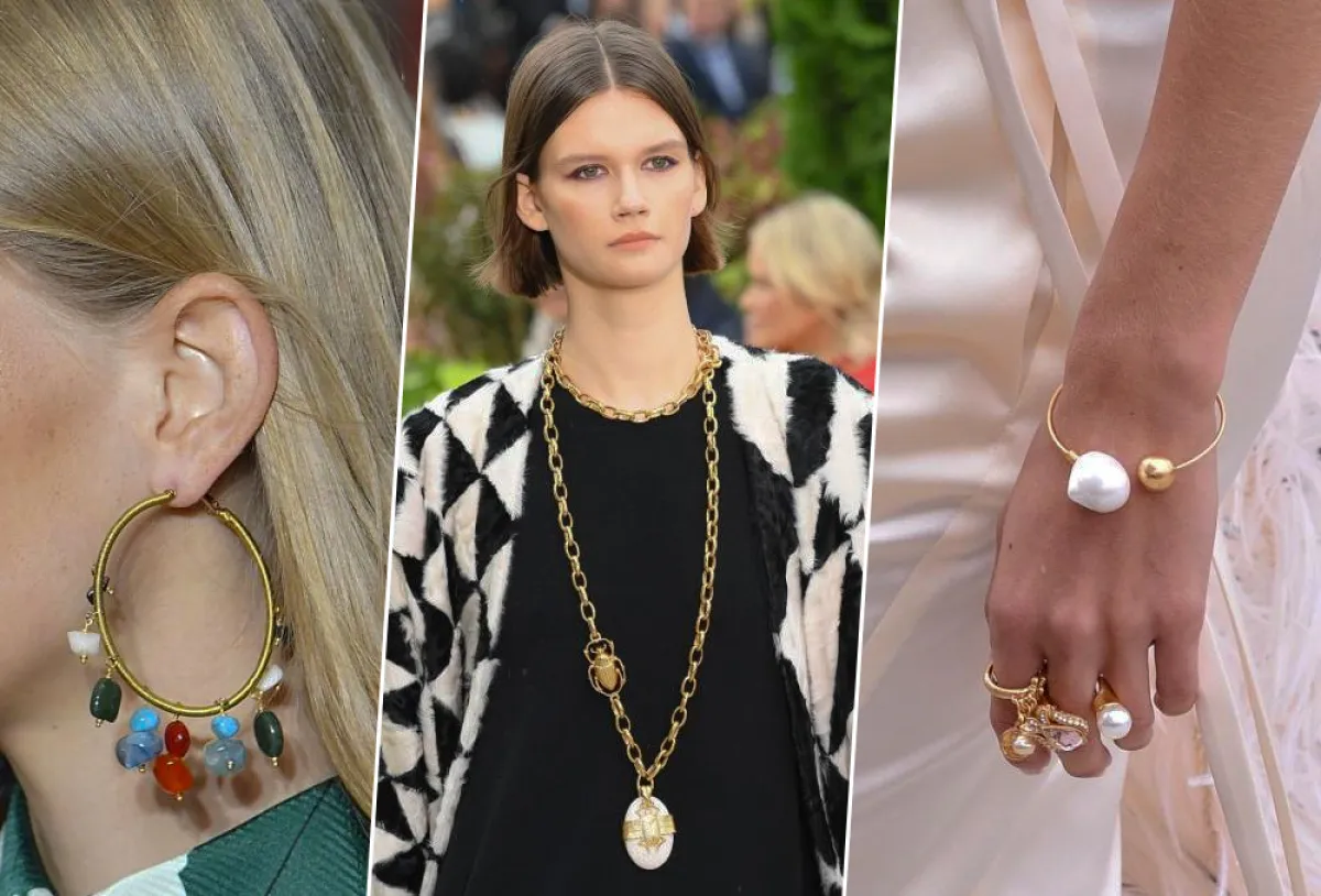 الاكسسوارات باللون الذهبي ستكون هي الأنسب والأكثر ملاءمة مع اللون الأخضر، بالكثير من درجاته، على سبيل المثال الإسوارة المعدنية مع حجر اللؤلؤ الضخم، والخاتم الكبير من Oscar de la Renta أوسكار دي لارينتا مع الفساتين الميدي الطويلة من دون أكمام.