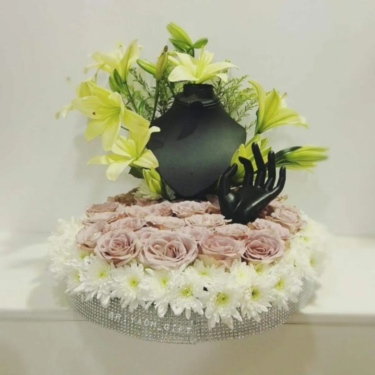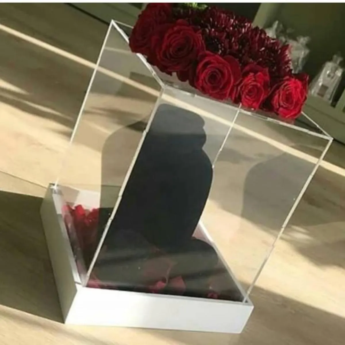 أو أن تستخدمي الصندوق الزجاجي، مع الحامل للـ مجوهرات وكأنّ شبكتك قطعة ثمينة بالمتحف، مع تزيين الصندوق بالورود، او قماش الدانتيل حسب ذوقك الخاص.