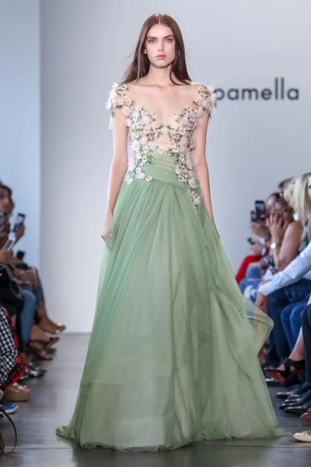 أما عن ألوان فساتين الخطوبة الرائجة لعام 2019، فتنوعت بين الألوان القوية والألوان الناعمة، فبرزت ألوان الباستيل الهادئة لدى دار باميلا رولان، Brandon Maxwell، وبادجلي ميشكا Badgley Mischka.