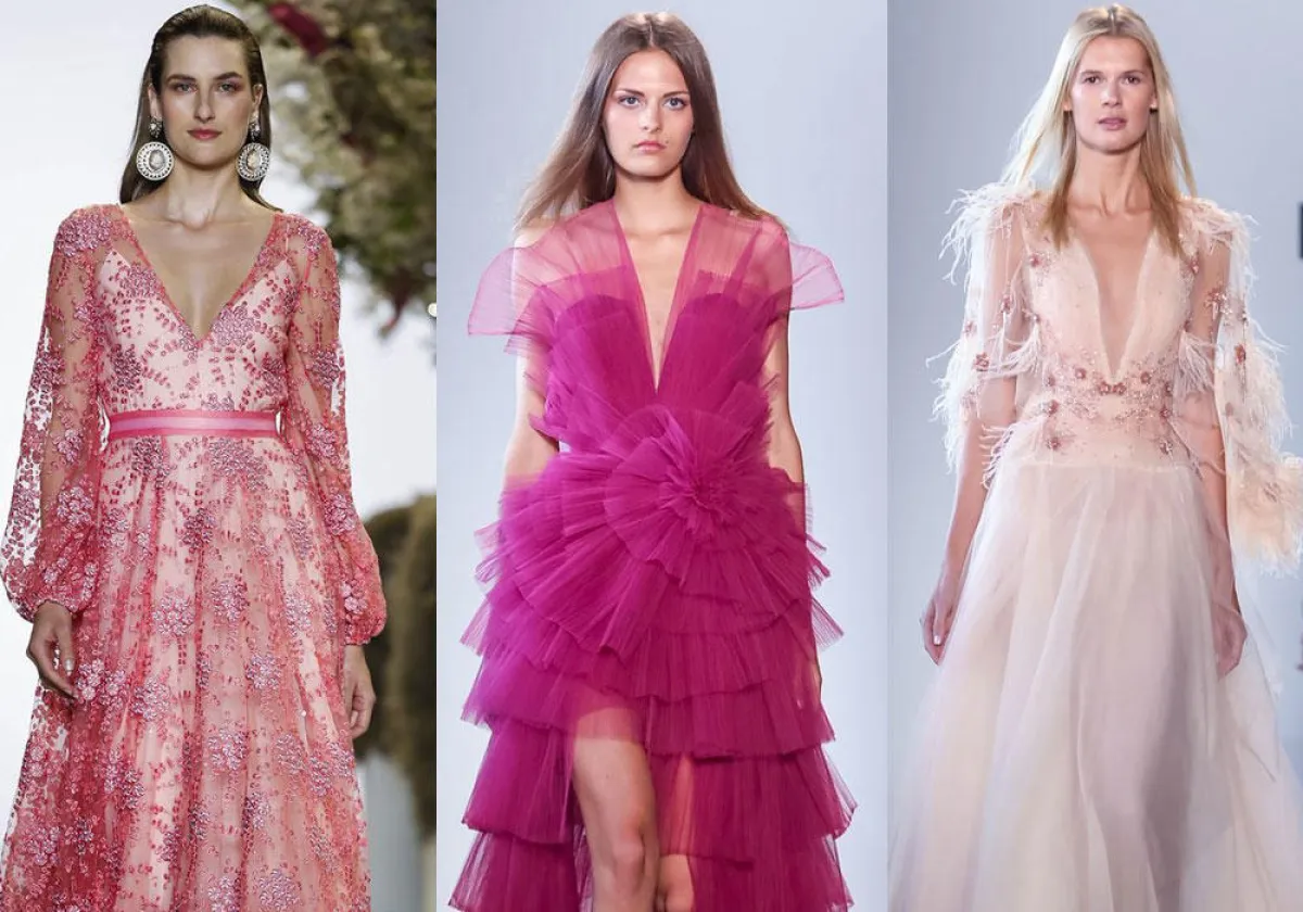 لأن اللون الوردي هو الأكثر قرباً لقلوب النساء، تحرص بيوت الأزياء على تصميم فساتين وردية تحاكي الأنوثة، وفي أسبوع نيويورك للموضة ربيع وصيف 2019، ظهرت العديد من موديلات فساتين بهذا اللون الناعم وتدرجاته المختلفة.