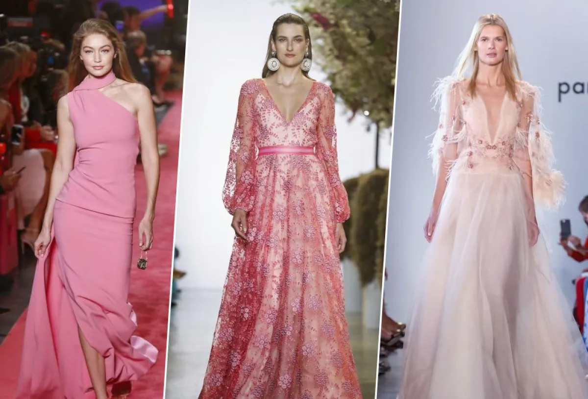 قدمت بعض الماركات فساتين وردية فاتحة تميزت بالنعومة والرقّة، مثل الفستان التول المزين بالريش والورود من باميلا رولان Pamella Roland، الفستان بأكمام الدانتيل والقصّة العمودية من تاداشي شوجي Tadashi Shoji، والفستان الستان المزين بوردة كبيرة على الخصر من مارك جاكوبس Marc Jacobs.