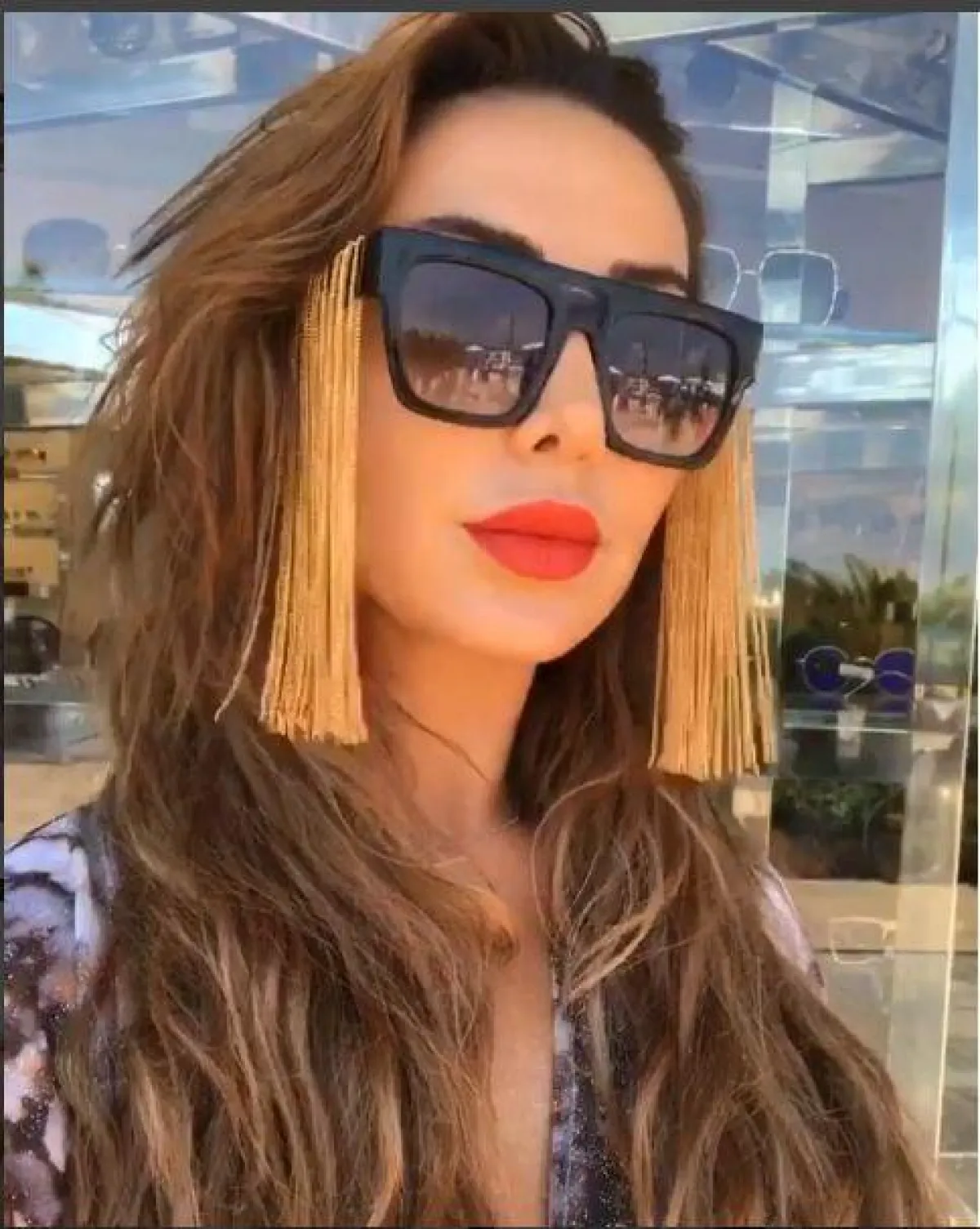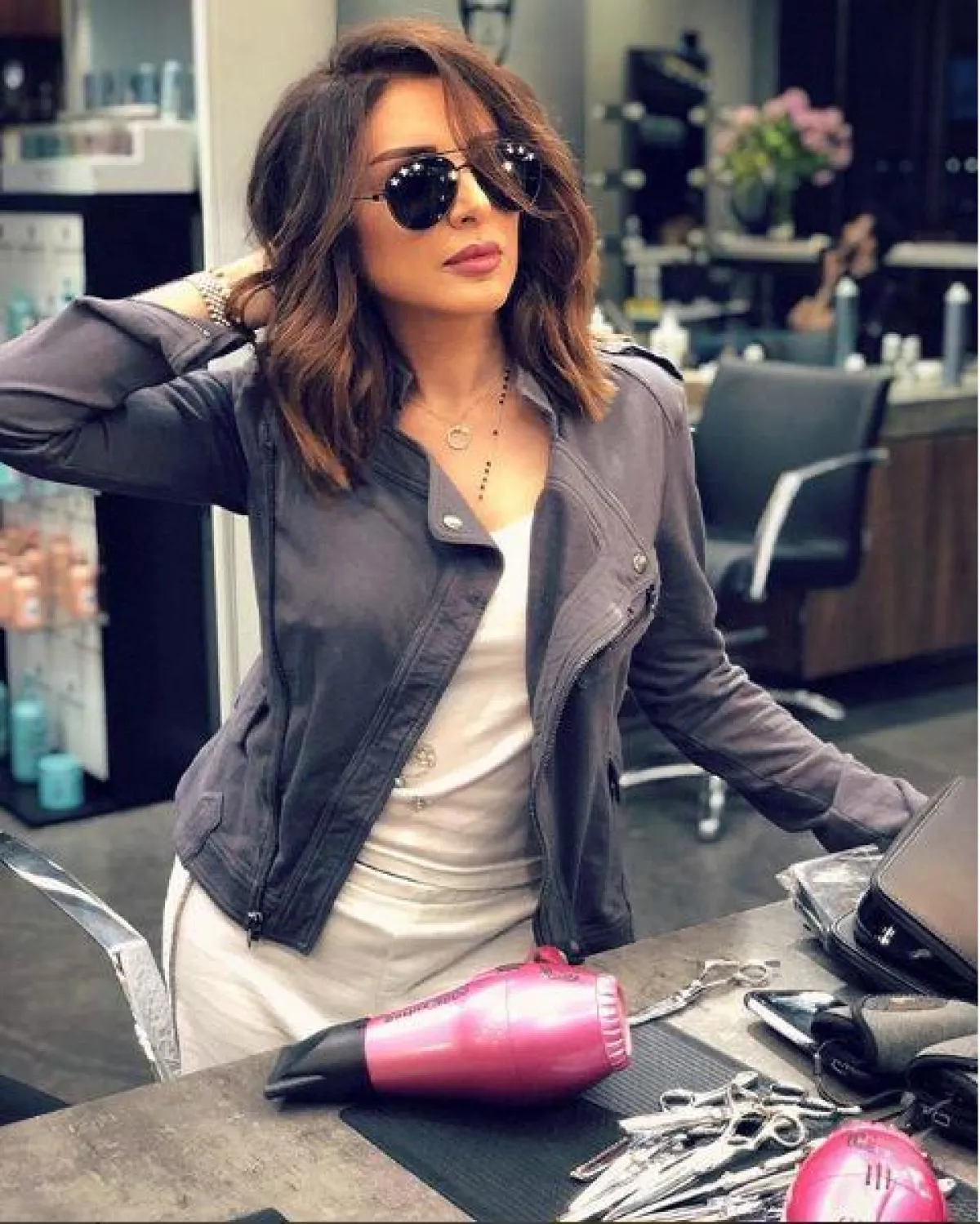 لطالما كانت النظارات العاكسة أو المعروفة بـ Mirror Sunglasess هي الأنسب لأجواء العطلة الصيفية والشاطئ، لهذا كان من الطبيعي أن نجدها في إطلالة النجمات، كالنجمة مايا دياب بالنظارة المستطيلة، بستايل فتاة الموتوسيكل، باللون البينك النيون، جاءت متماشية مع بشرتها العنبية.
