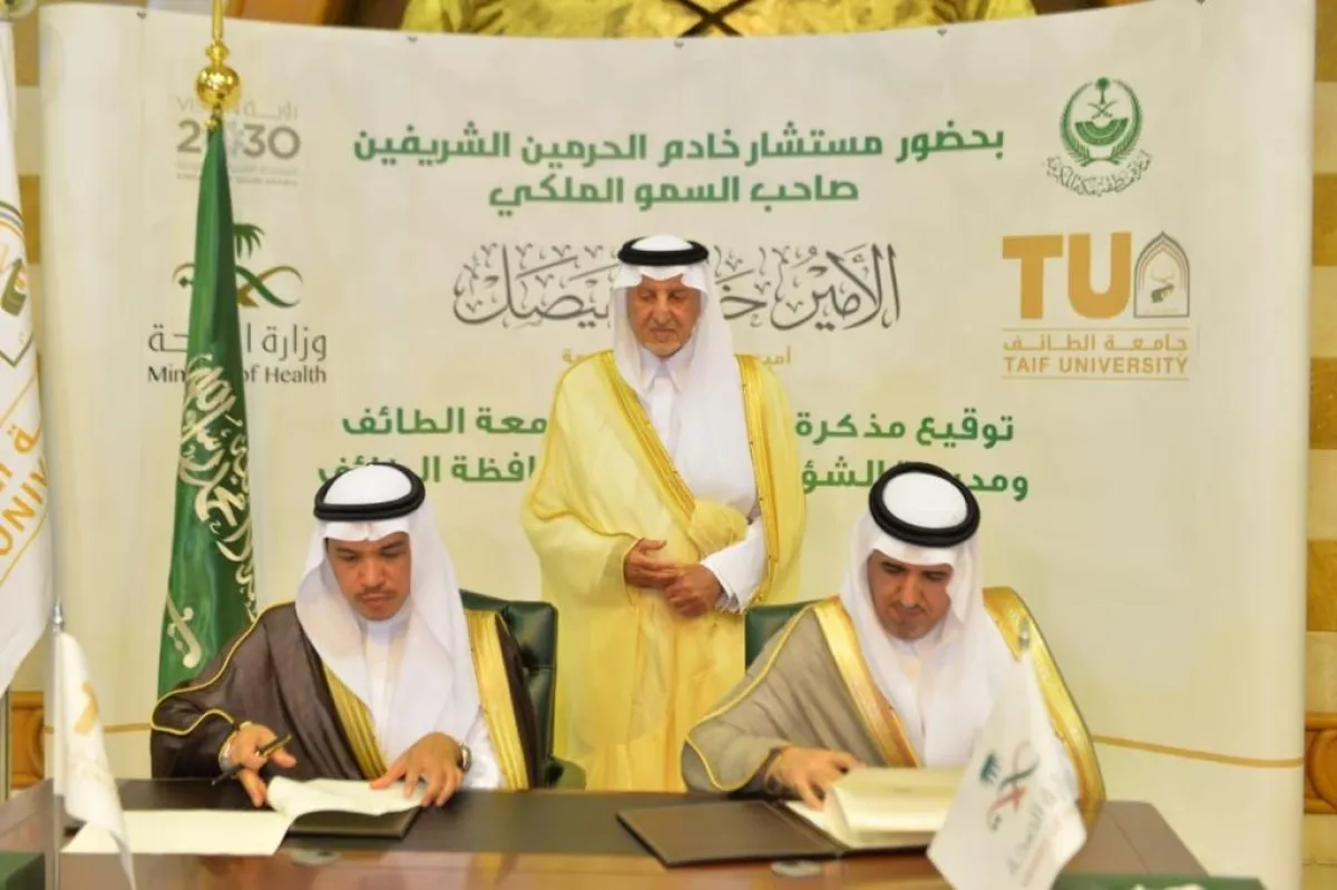 شهد مستشار خادم الحرمين الشريفين أمير منطقة مكة المكرمة صاحب السمو الملكي الأمير خالد الفيصل في مقر الإمارة بجدة، توقيع مذكرة تفاهم بين جامعة الطائف ومديرية الشؤون الصحية بمحافظة الطائف.