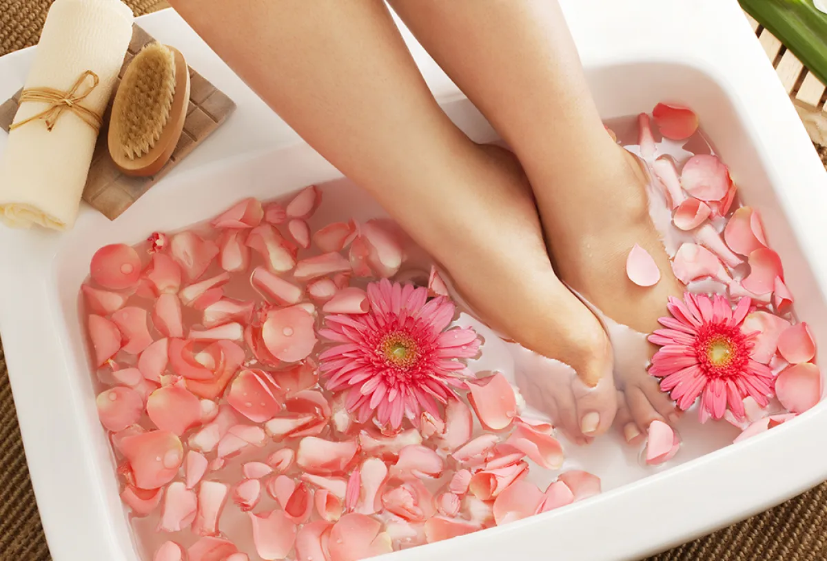 اتركي الخليط لمدة نصف ساعة، ثم اشطفي قدميك بالماء الفاتر.