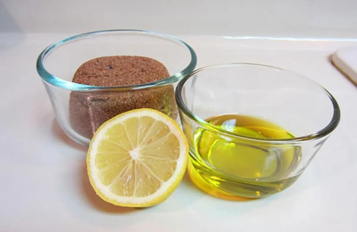 الجمع بين الليمون والسكر البني وزيت الزيتون، يعتبر علاجاً ومقشراً لتنعيم اليدين، والتخلص من لونهما الغامق، فللسكر البني فوائد أكثر من السكر الأبيض، لأن حبوبه أصغر حجماً، وأكثر ليونة، ما يتسبب في ضغط أقل على بشرتك، كما أنه يعمل بقوة على القضاء على خلايا الجلد الميتة، بفضل احتوائه على حمض الغليكولي، أما الليمون فهو أشهر علاج لتفتيح البشرة، والتخفيف من البقع الداكنة، كما يمنح تألقاً طبيعياً مع إضافة زيت الزيتون إلى الخليط. لإضفاء نعومة وترطيب على البشرة، تصبُّ جميع المكونات في وعاء صغير، وتمزج جيداً، وتفرد على اليدين برفق وتترك لمدة 10 دقائق، ثم تشطف بالماء البارد، وتكرر هذه العملية 3 مرات في الأسبوع.