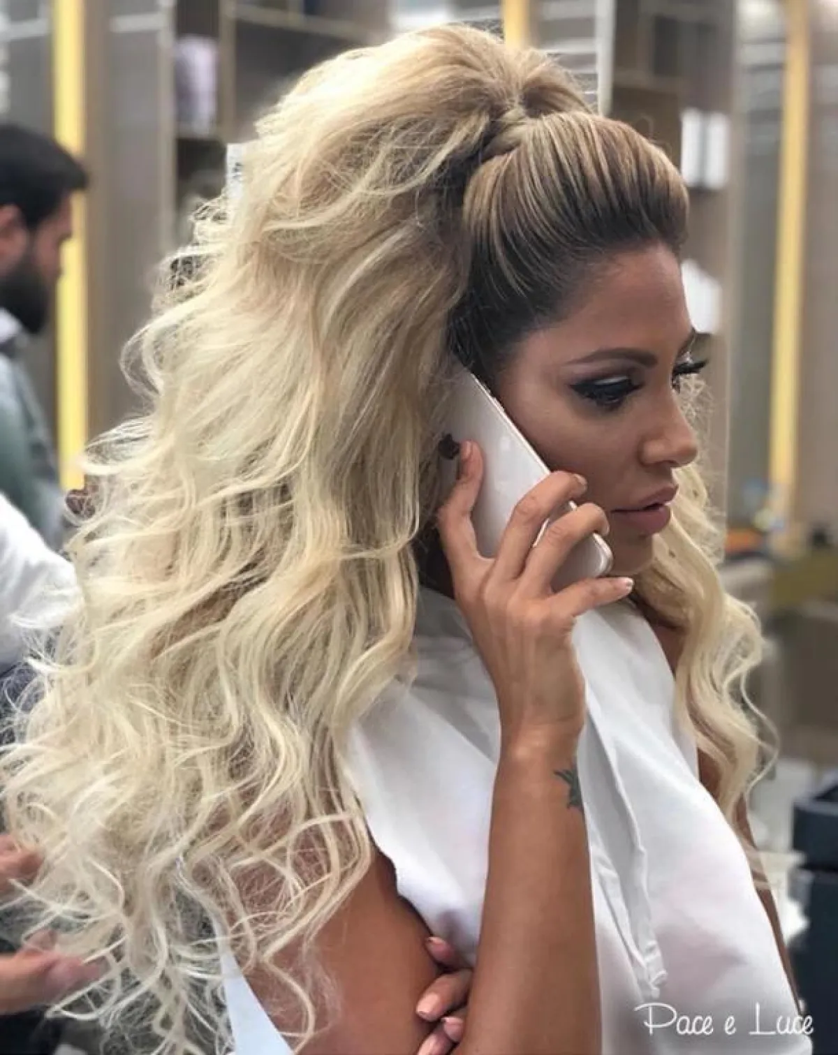 قد تكون تلك الخيوط منسدلة على الكتفين، أو أنها تزداد بريقًا تحت الإضاءة.