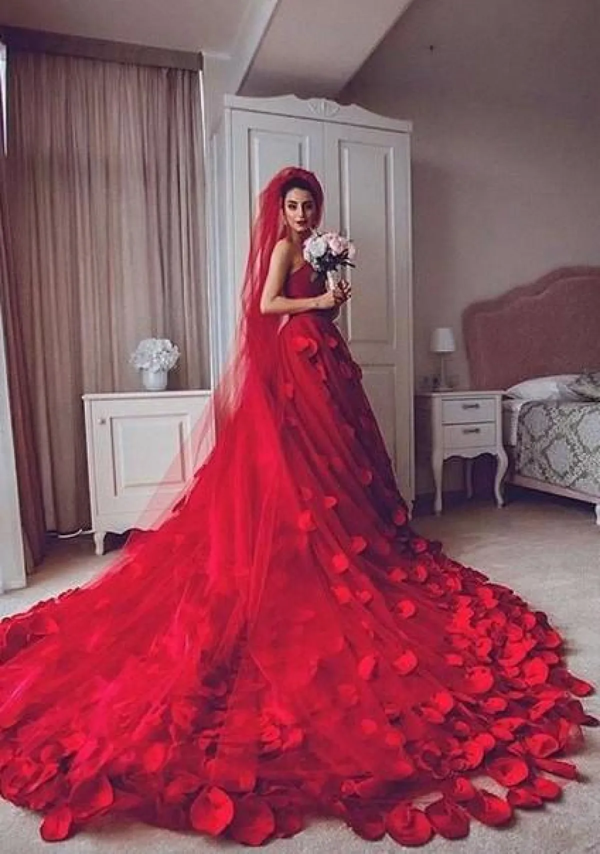 هناك العديد من الألوان القوية التي تمنح العروس إطلالة جاذبة، ومن بينها اللون الأحمر لما له من سحر أخّاذ، نقدّم لك فيما يلي فساتين زفاف باللون الأحمر لتتألقي يوم زفافك.