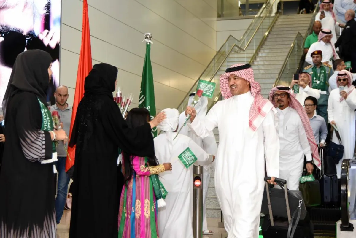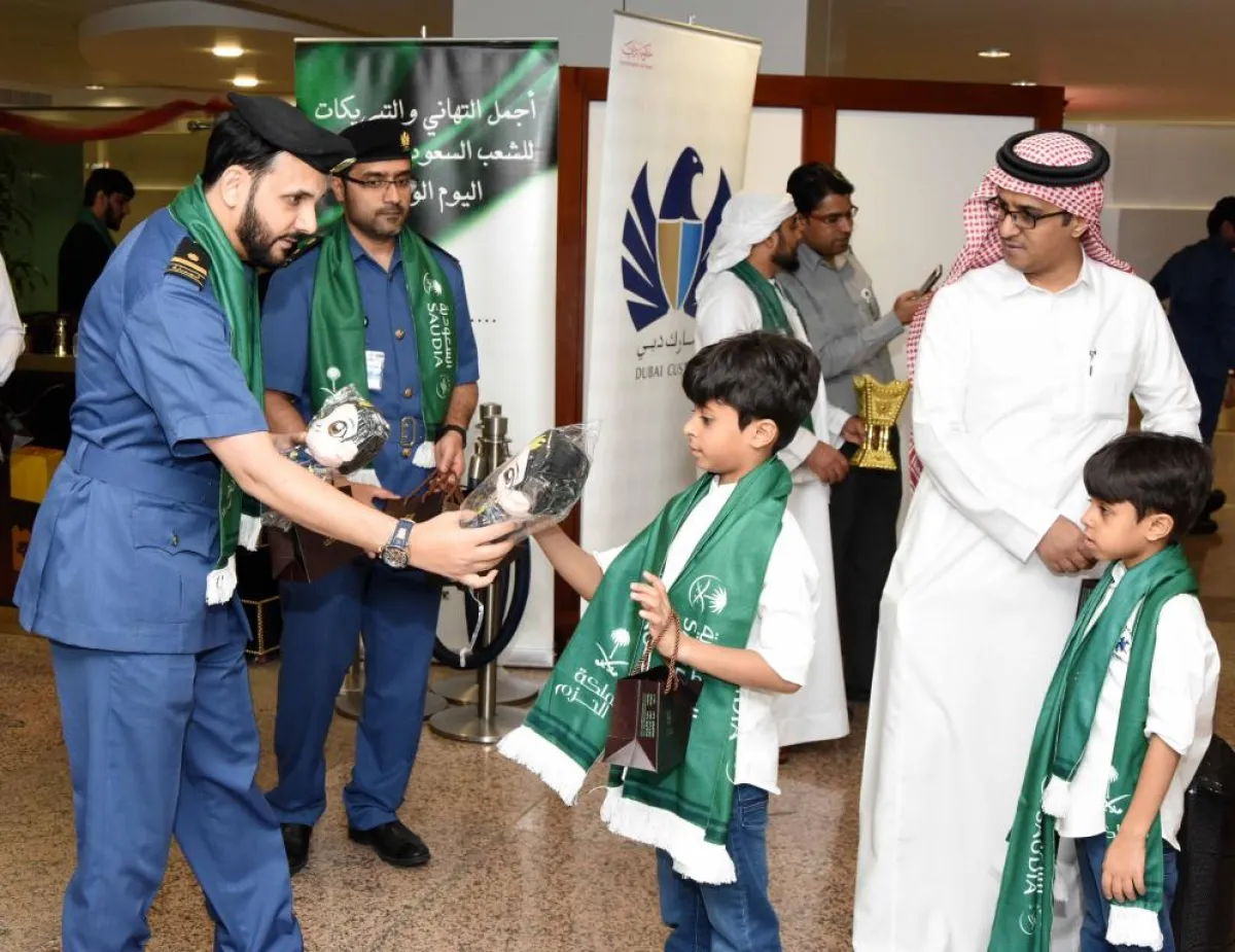 تستقبل مطارات دبي في المباني(1 و2 و3 ) ضيوفها السعوديين بباقات الورود والقهوة العربية والحلويات، كما أنها تستضيف مجموعة من الفعاليات المرتبطة باليوم الوطني السعودي.
