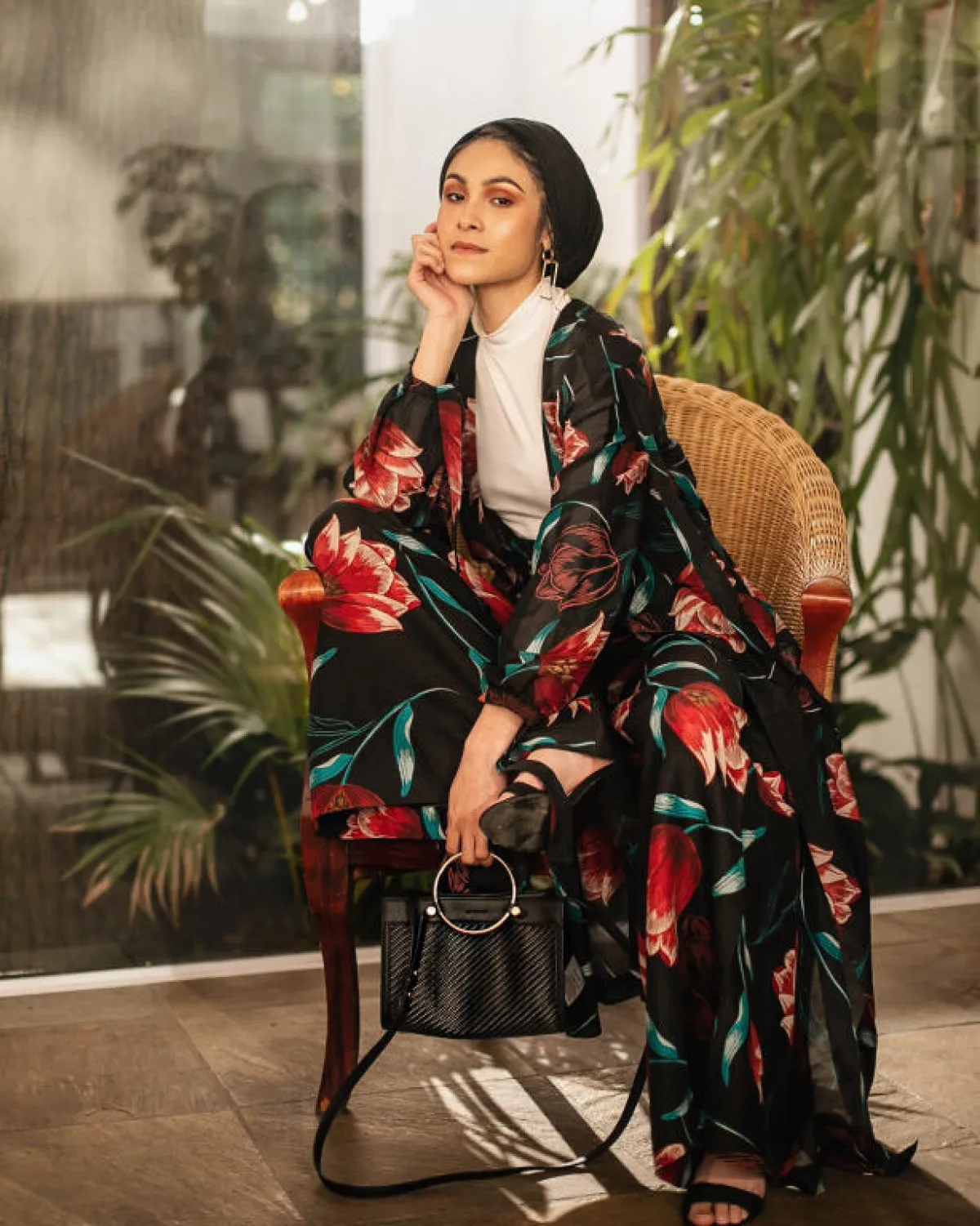 عباءة مفتوحة من الأمام ومزينة بنقوشات الزهور المميزة هي الأجمل في إطلالات الفاشينيستا نبيلة كريم. شاهدي الصور واستلهمي الكثير من الإطلالات الخلابة لمدونة الموضة.