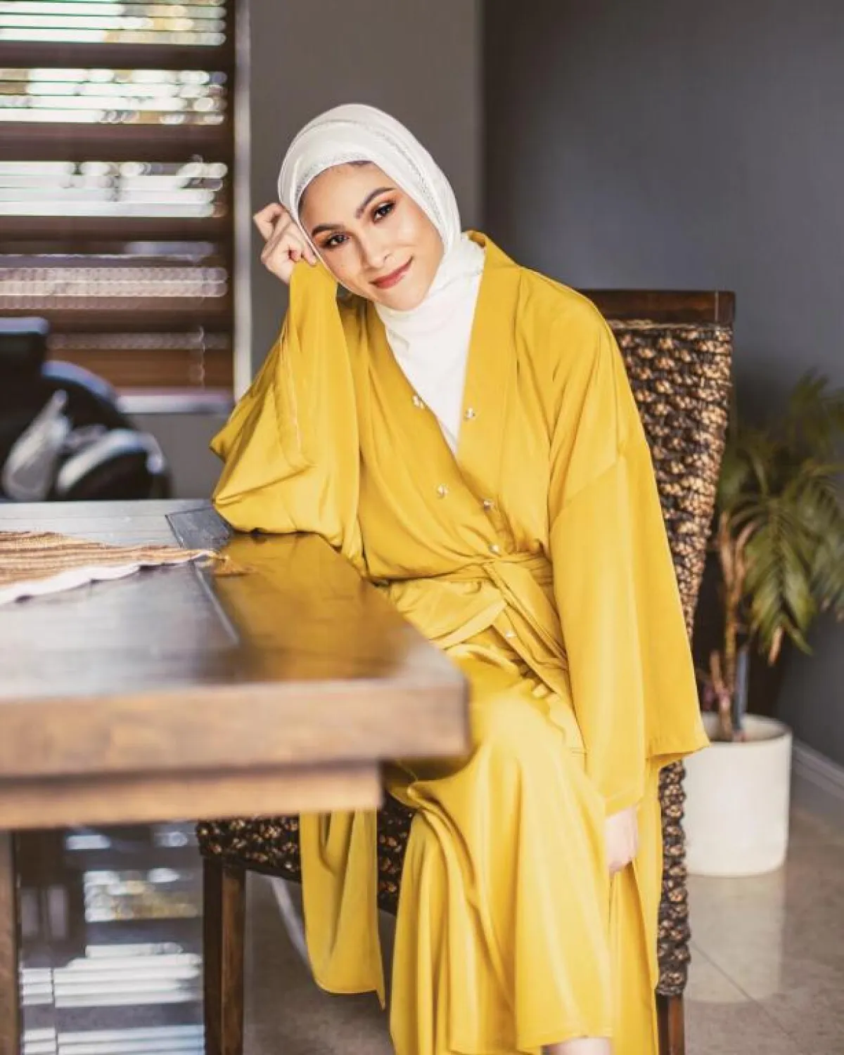 الفساتين الرقيقة للغاية والخالية من التفاصيل كانت من أهم خيارات نبيلة كريم في إطلالتها المحتشمة، ولم تخلُ أيضاً من الفساتين اللف wrap dresses بألوان الصيف المميزة كالأصفر.