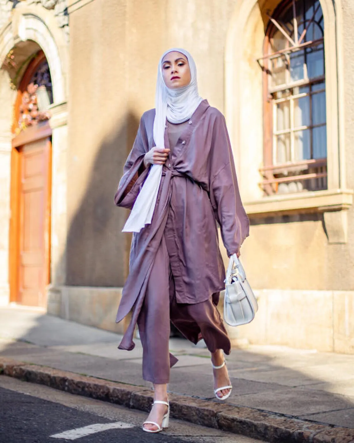 لوك كامل باللون نفسه هو من أكثر الصيحات جاذبية، كما أنه مريح للعين، نسقت بنطلون توب وكارديان بدرجات اللون البنفسجي، وحرصت على أن يكون الحجاب باللون الأبيض.