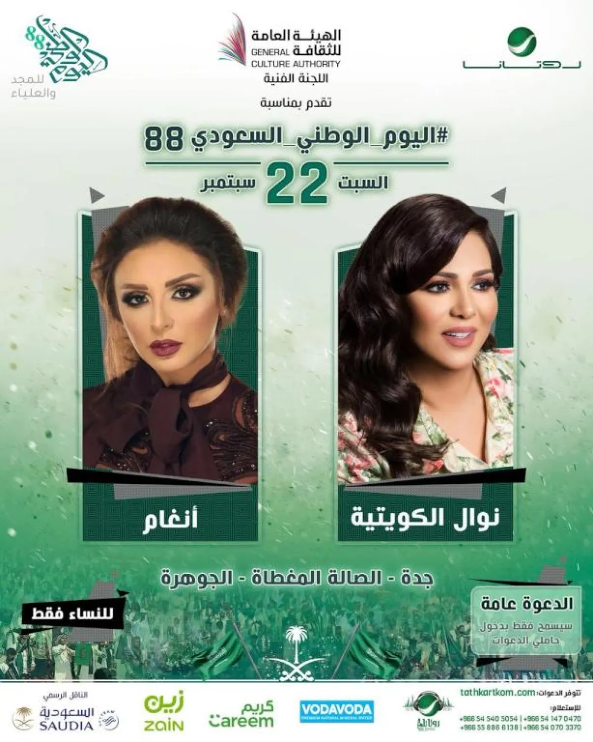 وفي اليوم التالي تم طرح تذاكر الحفلات التي ستحتضنها جدة في الساحل الغربي للفنانات نوال الكويتية، وأنغام، وبعدها بساعات طرح إصدار آخر الدعوات لحفلة ثلاثية تضم فنان العرب محمد عبده ورابح صقر ورامي عبد الله.