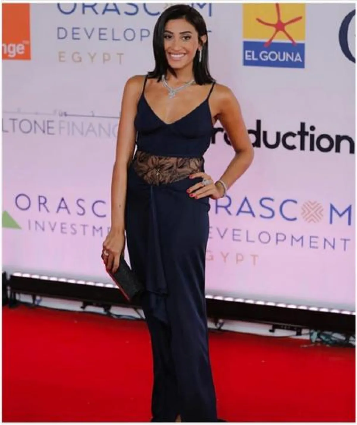 فقد وصلت النجمة، التي ارتبط اسمها مؤخرًا بالنجم عمرو دياب، بفستان باللون الكحلي من روبرتو كفالي، يبلغ ثمنه حوالى 1300 دولار أمريكي، ويتميز عند منطقة البطن بقماش الدانتيل الشفاف.
