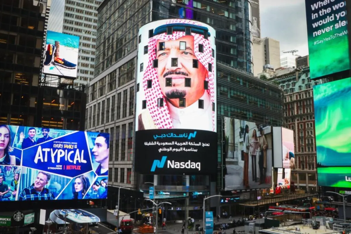 بمبادرة من " دبي ناسداك" ودولة الإمارات العربية المتحدة، وبالتزامن مع اليوم الوطني للمملكة العربية السعودية الـ 88، والذي سيوافق الأحد 23 سبتمبر، تحولت شاشة ناسداك في وسط ميدان "التايمز سكوير" في مدينة نيويورك الأمريكية إلى اللون الأخضر، حيث عرضت العلم السعودي وصوراً لأبرز قادته الحاليين- خادم الحرمين الشريفين الملك سلمان بن عبدالعزيز وولي العهد الأمير محمد بن سلمان-، وذلك في مقتبل يوم الجمعة وسط الحشود المكتظة في الساحة الشهيرة قبل بدء التداول في سوق البورصة، و قبل التاريخ المرتقب لليوم الوطني السعودي بيومين، بجانب ذلك، عُرض من خلال شاشة ناسداك وهي أكبر شاشة رقمية عالية الوضوح في العالم، علم دولة الإمارات قبيل انطلاق ماراثون زايد الخيري.