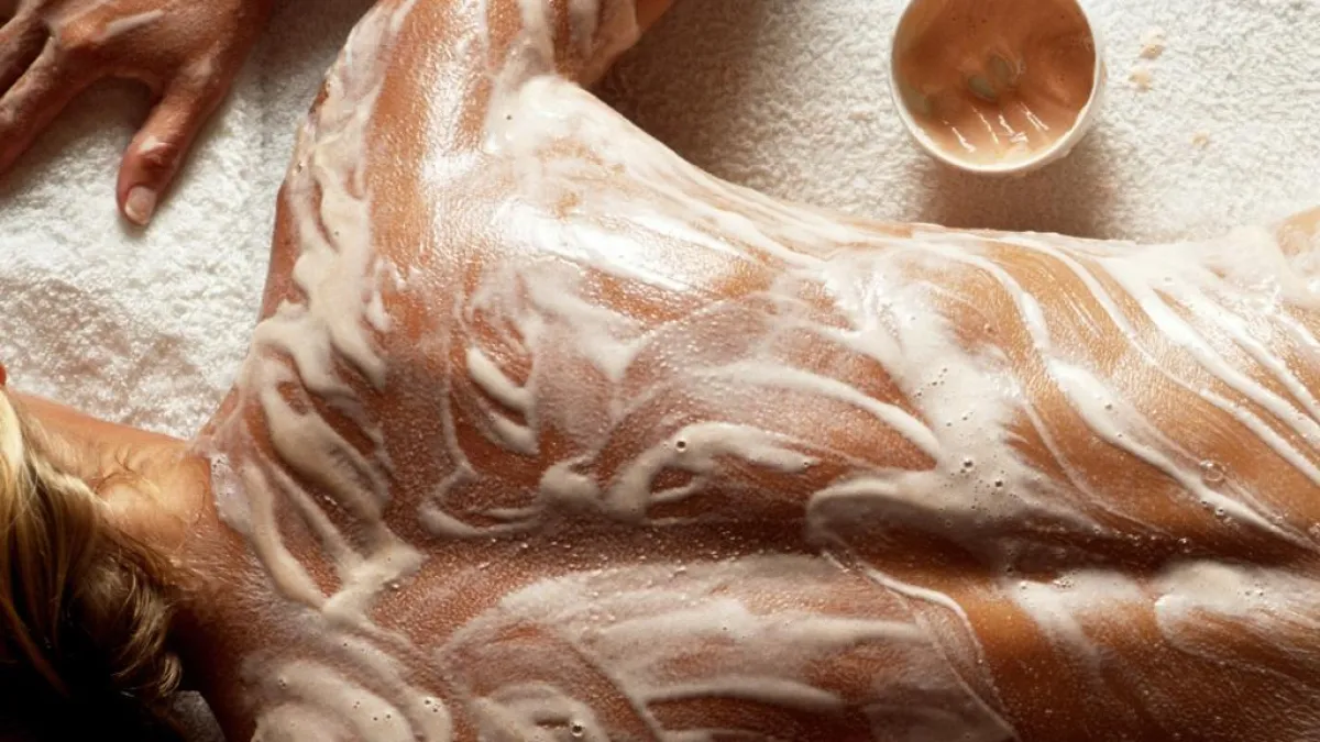 - ابدئي بوضع الطمي المغربي مع فرك بشرتك على جسمك ككل، واتركيه لعدة دقائق، ولا تنسي بشرة وجهك كذلك، ولكن الفرك عليها سيكون بلطف أكثر، حتى لا تلتهب.
