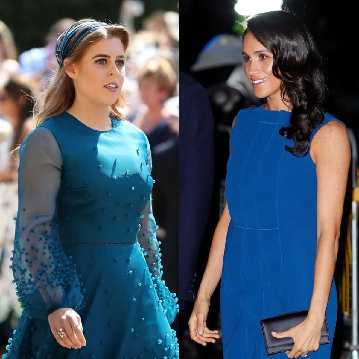 وأكملت ميغان إطلالتها بمعطف Smythe أزرق ، وقميص أسود بقيمة 395 دولارًا من سارة فلينت. في حين ، ارتدت الأميرة بياتريس معطفًا بني اللون وحذاء مفتوحاً.