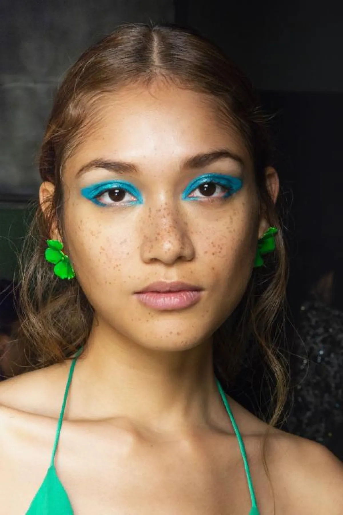 تلوّنت عيون العارضات بألوان مشرقة كالأخضر، والأزرق والأصفر وغيرها.